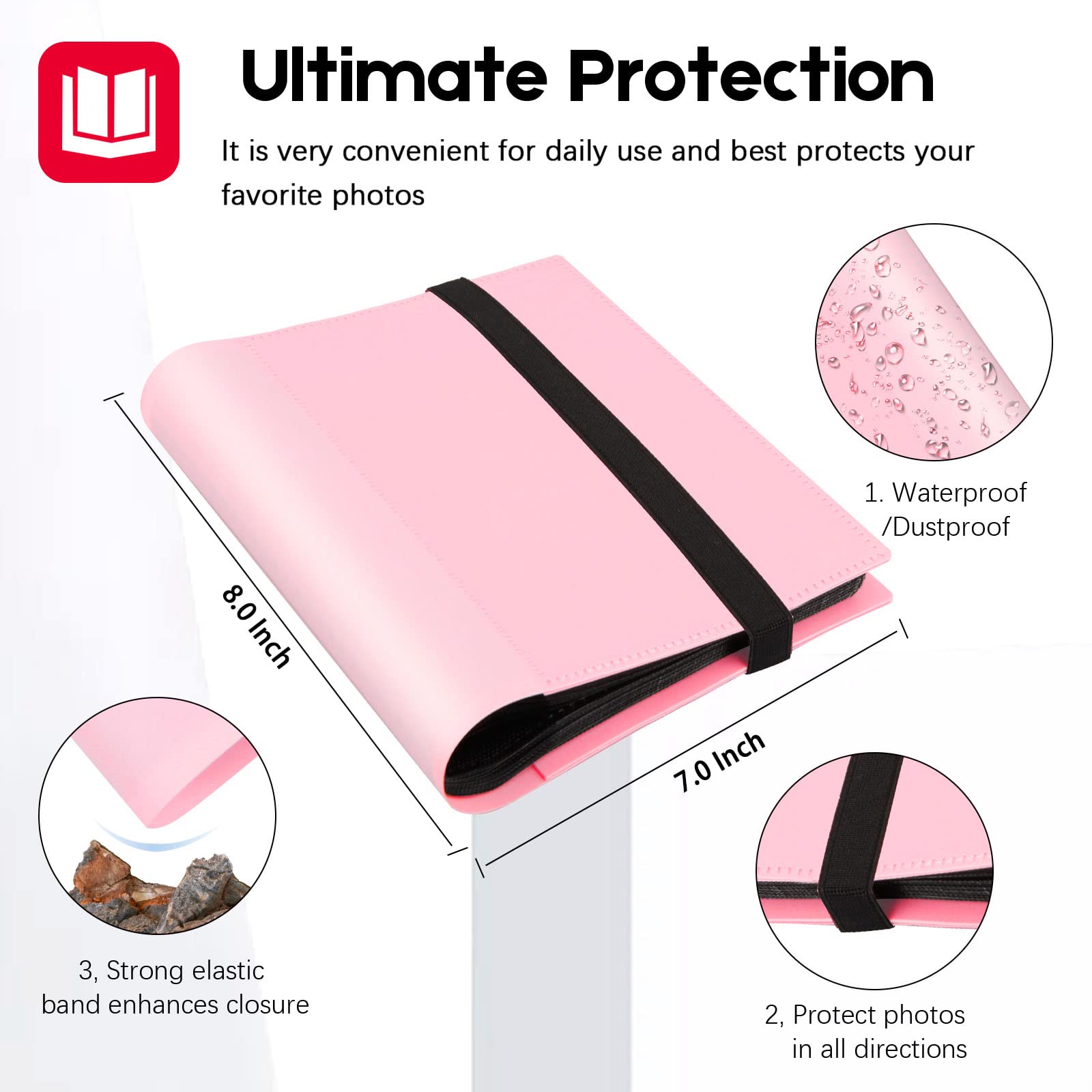 Petit album de 12,7 x 17,8 cm pouvant contenir 64 photos - Pages intérieures noires avec bande élastique solide - Mini livre de 12,7 x 17,8 cm - Album photos de 12,7 x 17,8 cm - Rangement d'art pour enfants, famille, cartes postales (rose) Album Pages Plastique Transparent Album Photo 200 Pages Format 21x28cm - Poches Transparentes Pour Photos 13x18cm Rangement Photos 13x18 Chaque poche d'affichage est une page intérieure noire, parfaite pour afficher des photos de 12,7 x 17,8 cm, des cartes postales, des illustrations Flexible et... Protégez vos photos préférées de 12,7 x 17,8 cm Poche latérale pour empêcher les cartes de tomber facilement. Mini album photo 12,7 x 17,8 cm – Convient pour une utilisation avec des photos de 12,7 x 17,8 cm. Protection ultime pour vos photos préférées : notre couverture d'album de 12,7 x 17,8 cm est très solide et pas facile à déchirer, fabriquée en plastique poly robuste. Utilisations multiples : album photo léger et doux, peut être transporté dans votre sac pour montrer vos meilleures photos instantanées ou le mettre à la maison comme décoration. Pour les œuvres d'art, le rangement d'images de 12,7 x 17,8 cm, le rangement d'art pour enfants, les croquUtilisation comme album photo portable de 12,7 x 17,8 cm, livre de brag ou petit album de scrapbooking La sangle élastique maintient l'album fermé lorsqu'il n'est pas utilisé. Elle peut contenir 64 photos de 12,7 x 17,8 cm, soit 64 pages, chaque page peut contenir 1 photo. Pages intérieures noires : les pages intérieures noires ont un aspect texturé attrayant pour stocker vos photos en toute sécurité et empêcher les pages de coller ensemble, de froisser et d'endommager vos photos Petit Album Photo 12,7 X 17,8 Cm Pour 50 Photos – Couverture Rigide Simple En Album de voyage, album de mariage, album de croissance pour bébé, album d'anniversaire et d'anniversaire