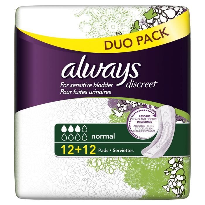Les coussinets Attends For Men 3 sont spécialement conçus pour les hommes ayant une faible faiblesse de la vessie. ATTENDS Slip Regular 10 Large - 1 paquet de 26 protections Attends pour les hommes 4 (épaisseur d'aspiration 4) - l'insert de forme anatomiquement pour les hommes en lumière Faiblesse de la vessie moyenne - ofe une... Protections Urinaires Pour Homme Attends Protections Pour Homme 4 Paquets De 16 = 64/étui Couche Homme Adulte Forme anatomique pour un ajustement serré et confortable. Serviettes d’incontinence et de post-partum Always Discreet, longues... La gamme masculine est fabriquée dans un matériau doux et respirant, qui a une bande de fixation qui permet aux produits d'être portés avec les propres sous-vêtements ajustés. Bande de fixation qui permet de porter le coussinet masculin avec vos propres sous-vêtements ajustés. Les produits sont discrets et confortables à porter, gardent la peau sèche et offrent une protection contre les fuites et les odeurs. Serviettes pour incontinence Sence normal, 12 pièces.