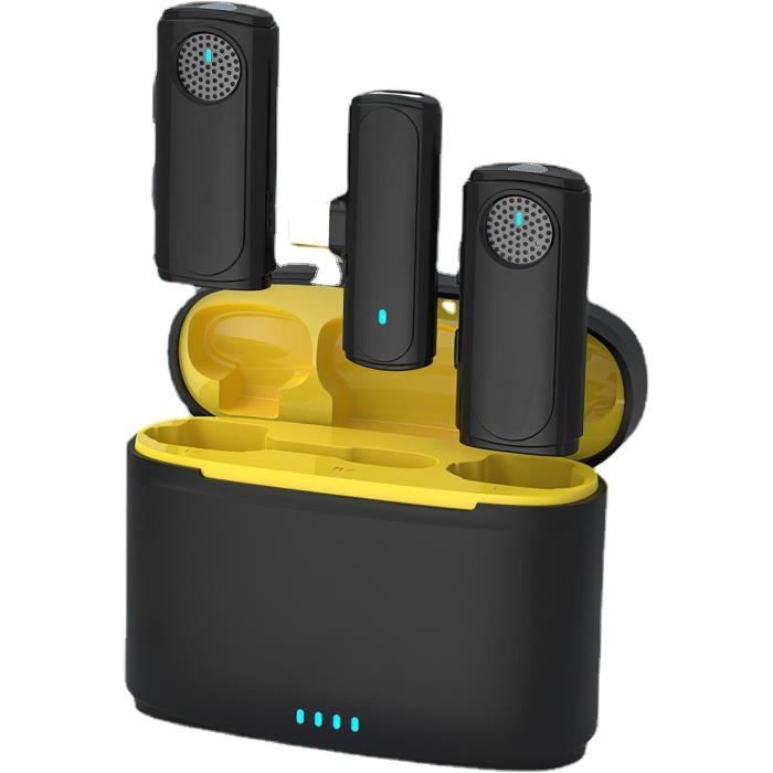 GOMETY Microphone Lavalier Sans Fil 3-En-1 : Ensemble Microphone Professionnel, Pour Streaming En Direct Et Interviews, Avec Adaptateurs USB-C Et iPhone, Pour Smartphone, Tablette Et PC (Noir) Caractéristiques du produit: 1., Compatibilité Multifonctionnelle: Ce microphone lavalier sans fil de GOMETY avec son design 3-en-1 offre une compatibilité étendue avec les iPhone, iPad, smartphones Android, caméras, ordinateurs et portables., 2., Excellente Qualité Sonore et Réduction du Bruit: Avec une puce DSP avancée, le microphone sépare les bruits de fond et assure une transmission claire du son même dans des environnements bruyants., 3., Fonctionnement Simple et Connexion: La fonction plug-and-play permet une connexion rapide sans Bluetooth ni application, évitant toute configuration complexe. 【Fonctionnement Simple et Connexion】Le microphone lavalier 3-en-1 permet une connexion rapide et facile par plug-and-play, sans nécessité de Bluetooth ou d'installation d'application. 【Compatibilité Multifonctionnelle】Avec son design 3-en-1, ce microphone lavalier sans fil de GOMETY est multifonctionnel. Microphone Lavalier sans Fil pour iPhone iPad Android, Micros sans Fil Microphone Lavalier sans Fil pour iPhone iPad Android, Micros sans Fil... Micro Dji Microphone Lavalier Sans Fil 3 En 1, Pour Iphone, Android Micro Podcast Si vous avez des questions concernant l'emballage, veuillez nous contacter, merci. 【Design Compact et Portable】Le design compact et maniable du microphone, de la taille de votre petit doigt, le rend facile à transporter. Connectez simplement le récepteur à votre appareil, allumez le microphone et la connexion est automatiquement établie. Équipé d'adaptateurs USB-C et iPhone, il est largement compatible avec iPhone, iPad, téléphones Android, caméras, ordinateurs, laptops et Macbooks, applicable largement pour divers besoins médiatiques. 【Autonomie de Batterie Durable】Équipé d'une batterie intégrée, le microphone lavalier GOMETY offre une performance impressionnante avec une durée de fonctionnement allant jusqu'à 6 heures.