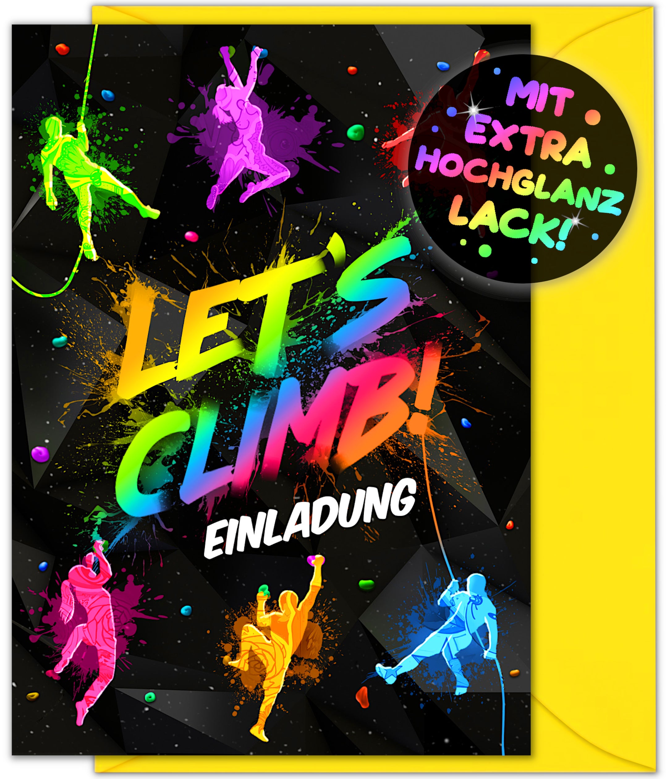 MACHE DEINE KLETTER-PARTY ZU EINEM ABENTEUERLICHEN ERLEBNIS Bring Spannung und Action in deine Feier mit unseren Einladungskarten Kindergeburtstag im aufregenden Kletter-Design ! Mache deine Kletter-Party zu einem unvergesslichen Erlebnis mit unseren Einladungskarten Kindergeburtstag. PRAKTISCH UND PERSONALISIERBAR Trage die Details deiner Feier (Datum, Uhrzeit, Ort) ganz einfach in die Vorlage ein, die speziell für Kinder Einladungskarten... Mit einem dynamischen und farbenfrohen Design sind diese Einladungskarten perfekt für Jungen und Mädchen, die die Spannung des Kletterns lieben und ihren Geburtstag mit einer aufregenden Herausforderung feiern möchten. Perfekt als Einladung Kletterhalle, Einladungskarten Kindergeburtstag Klettern oder für ein Abenteuer-Event in Hochseilgärten Oder Boulderhallen. Wähle ein abenteuerliches Design und begeistere deine Gäste mit einer Einladung, die den perfekten Start für ein unvergessliches Klettererlebnis bietet! Ob für eine Einladungskarte Kindergeburtstag Junge, eine Einladungskarte Kindergeburtstag Mädchen oder sogar für Erwachsene - Diese Karten sind die perfekte Möglichkeit, Freunde zu einer actionreichen Feier einzuladen. Einladungskarte Kindergeburtstag Klettern - Send a Smile Sie sind 100 % plastikfrei und nachhaltig producziert – Die perfekte Wahl für eine Einladung Klettern Kindergeburtstag, die nicht nur cool aussieht, sondern auch umweltfreundlich ist! 🎁 DIE PERFEKTE EINLADUNG FÜR EINEN UNVERGESSLICHEN TAG Egal ob für eine Kletter-Party, einen Kindergeburtstag oder ein sportliches Event, diese Einladungskarten Klettern machen jede Feier zu einem besonderen Ereignis. Zudem sind sie 100 % plastikfrei und nachhaltig producziert - Die perfekte umweltfreundliche Wahl für eine Einladung Kletterparty Kindergeburtstag, die nicht nur cool aussieht, sondern auch die Umwelt schont. 12x Klettern EINLADUNGSKARTEN KINDERGEBURTSTAG Junge Mädchen - Die Einladungskarten zum Klettern selbst gestalten Du oder dein Kind wollt hoch hinaus? Ob in der Kletterhalle, Boulderhalle oder draußen im Kletterwald – das Klettern ist für Jung und Alt, Jungen und Mädchen eine tolle Erfahrung und eine schöne Idee zum Geburtstag. Gestalte deine Einladungskarte zum Klettergeburtstag ganz einfach online. Lade deine Gäste mit einer abenteuerlichen Einladung... Perfekt für Kindergeburtstag Einladungskarten, Mottopartys and sportliche Events. Hergestellt aus hochwertigem 350 g/m² Premium Karton, sind diese Einladungskarten Kindergeburtstag langlebig und stilvoll.