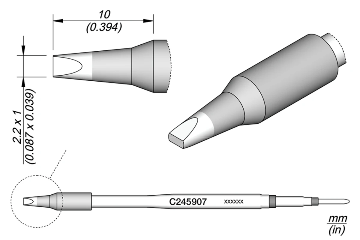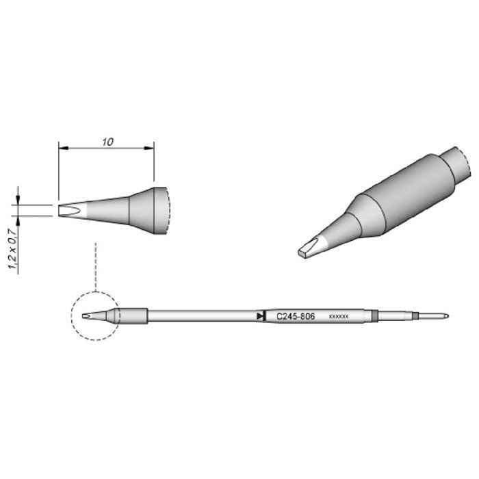 Cette cartouche dispose d'une pointe de lame de 10 mm de large. c245 laser gamme est l'une des plus larges jbc avec de nombreuses formes, tailles et modèles spéciaux. Avec le chauffage intégré La T245 est fournie avec une prise en mousse isolante thermique et un câble de 1,5 m (4,9 pieds). Le fer polyvalent T245 est parfaite pour les composants CMS ainsi que pour les travaux nécessitant une grande puissance (par exemple, la soudure sur plan de masse Panne de fer a souder Jbc - C245806 - à souder pour T245... JBC C245914 LF SMD à Souder Pour T245 Panne de fer à souder - C245 - Pointe de soudage - Compatible JBC T245