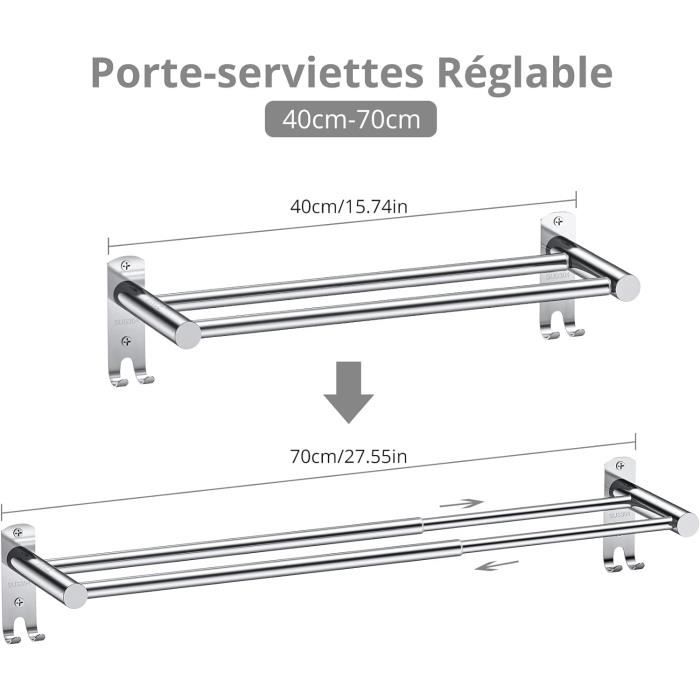 Les trous sur la porte de douche en verre doivent être de 12 mm de diamètre. Améliorez votre salle de bain aujourd'hui avec cette poignée de porte de douche de haute qualité qui allie durabilité, style et commodité. La finition chromée polie donne à la poignée de porte de douche un look élégant et moderne, tandis que le matériau en acier inoxydable assure une qualité durable. Les étapes d'installation sont les suivantes : Insérez les tubes en plastique transparent dans le trou de la porte., 2., Insérez les vis de fixation et les rondelles transparentes d'un côté, puis de l'autre côté de la porte en verre, installez la rondelle et la poignée/barre. Porte Serviette Salle de Bain Double Barres Porte Serviette Mural en Acier Inoxydable 40 cm Que vous cherchiez à améliorer votre poignée de porte de douche actuelle ou simplement besoin d'un porte-serviettes fiable, ce produit est la solution parfaite. Découvrez le Barre 40 SIL : choisissez la qualité SALGAR ! Améliorez la fonctionnalité et le style de votre salle de bain avec la poignée de porte de douche Ranbo en verre. Ne vous contentez pas de poignées de porte de douche ou porte-serviettes de qualité inférieure – investissez dans la poignée de porte de douche en verre Ranbo pour un ajout élégant et fonctionnel à votre salle de bain. Facile à installer : un excellent remplacement pour d'autres marques, cette poignée de porte de douche / barre porte-serviettes est conçue spécifiquement pour les portes de douche en verre sans cadre ou encadrées et s'adapte parfaitement. UTILISATION ➤ Idéal pour les salles de bain, torchons de cuisine, vêtements, etc. Sans corrosion ni rouille et plus durable. Made in Europe. Il suffira de... Robuste et durable : fabriqué en acier inoxydable, cette poignée de porte de douche / porte-serviettes est très robuste. OFFO Barre coulissante de douche de 802 , distance d'installation réglable de 40,6 à 78,7 c... Améliorez la fonctionnalité et l'esthétique de votre douche avec cette poignée de porte de douche élégante et pratique en verre. Il facilite le remodelage, et sa finition chromée polie lui donne une sensation de miroir qui améliore l'apparence générale de la douche. Dites adieu aux porte-serviettes fragiles qui se cassent ou rouillent facilement – La poignée de porte de douche en verre Ranbo est conçue pour durer. Barre Porte Serviette Wenko GROOFOO Double Barre Porte-serviettes En Acier Inoxydable Pour Salle De Bain Ou Cuisine Barre Pour Porte Serviette Un excellent remplacement pour d'autres marques, cette poignée de porte de douche coulissante offre une construction robuste et durable qui facilite les projets de rénovation.