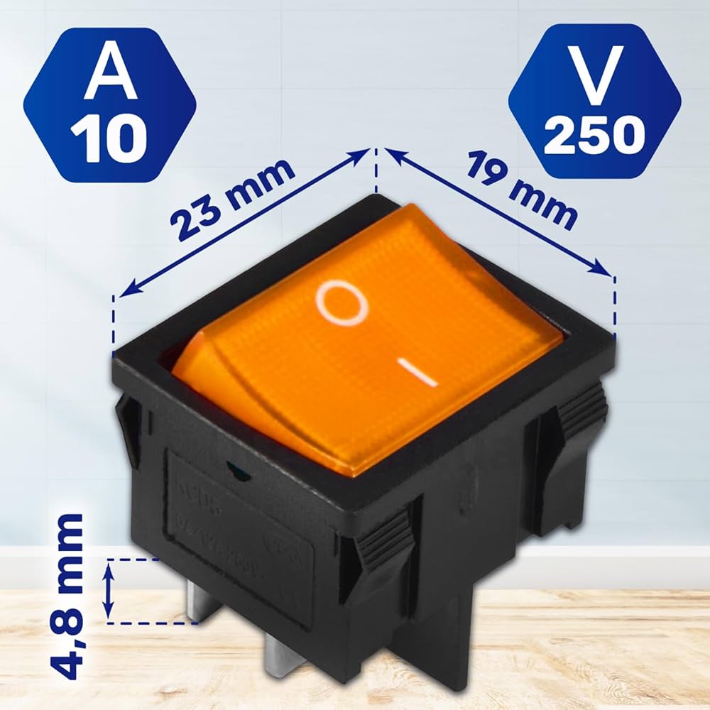 Un interrupteur bipolaire avec un voyant rouge et couvercle de protection est un composant électrique utilisé pour contrôler le flux d'électricité dans un circuit. Dimensions: largeur 19 mm, longueur 23 mm, avec 4 fixations 4,8 mm. Un interrupteur avec voyant lumineux est appelé interrupteur bipolaire parce qu'il possède deux circuits distincts qui peuvent être activés et désactivés indépendamment l'un de l'autre. interrupteur lumineux rond rouge à 4 cosses Ce modèle bipolaire fonctionne sous 6A - 250V et est équipé de 4 cosses faston 4,8mm. Son design compact et lumineux en fait un excellent choix pour le... Interrupteur Electrique Bipolaire Interrupteur à Bascule 30x22mm Rouge 2NO 250V 20A Lumineux 0-I Raccord Cosse Mâle 6,3mm Interrupteur Lampe De Chevet Elle permet d'indiquer d'un coup d'œil l'état du circuit, qu'il soit allumé ou éteint.
