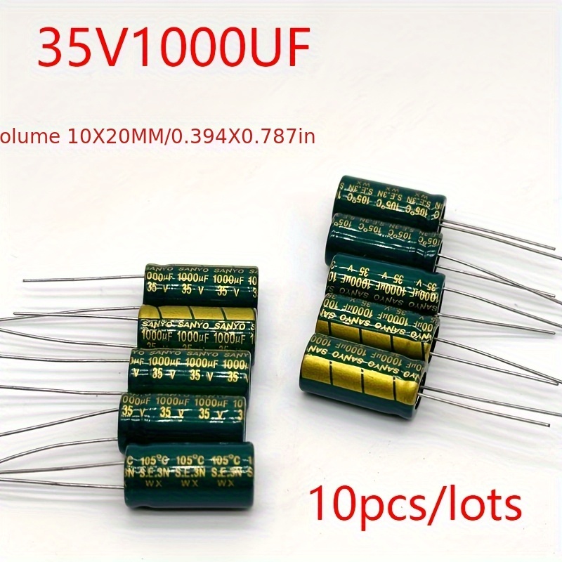Condensateurs 35v Tht Condensateurs Électrolytiques 1000uF 35V - Lot De 5 - 12,5x20mm - Pour Électronique Haute Température Lot Pièces électroniques Type : condensateur électrolytique en aluminium. En gros Aluminium Électrolytiques Condensateurs 10V 16V 25V 35V 50V 63V 100V 100UF 220UF 330UF 470UF 680UF 1000UF 2200UF 3300UF · Expédition en/au/aux... Lot De 20 Condensateurs électrolytiques En Aluminium 35 V 10 UF 22 UF 47 UF 100 UF 220 UF 330UF 470UF 680UF 1000UF 2200UF 3300UF 4700UF (taille : 35 V 470 UF 20 Pièces Bénéficiez d’une réparation, d’un remplacement ou d’un remboursement gratuitement pendant 2 ans après votre achat dans le cadre de la garantie légale de conformité (par ex. dysfonctionnement, panne). HUABAN 10 pièces 35V 3300UF 16x25mm Condensateur... Température de fonctionnement : 105 °C