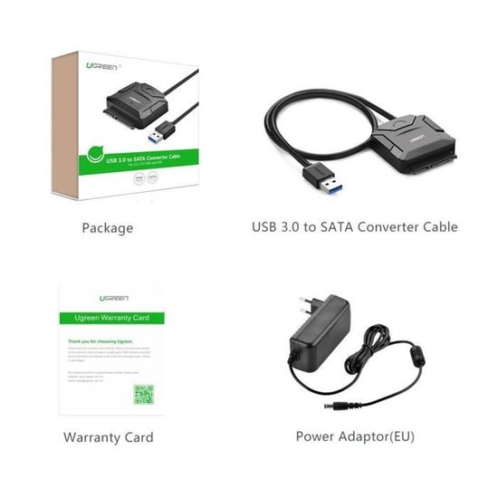 Ugreen Câble disque SATA 3., 0 avec construction durable de 50 cm pour une utilisation à long terme Ugreen Usb 3. 0 Boîtier Disque Dur Externe 2. 5 Pouces Sata Hdd Ssd 7mm 9. 5mm 6to Max 5gbps Supporte Uasp Cable Usb 3 0 Inclus Sans Outil Le câble UGREEN SATA III 6 Gb/s connecte les derniers disques SATA III et SATA I, II aux cartes mères internes et aux contrôleurs hôtes, mettant rapidement à niveau votre ordinateur vers un stockage étendu. La dernière revue SATA 3.0 permet des vitesses de transfert de données allant jusqu'à 6 Gbit/s, rétrocompatible SATA I et SATA II Cable Ugreen Ugreen Boitier Disque Dur Externe Nvme/M2 SATA SSD Disques Durs Et Sata Cable Ugreen Câble disque SATA 3.0 avec construction durable de 50 cm pour une utilisation à long terme. Le câble UGREEN SATA III 6 Gb/s connecte les derniers...