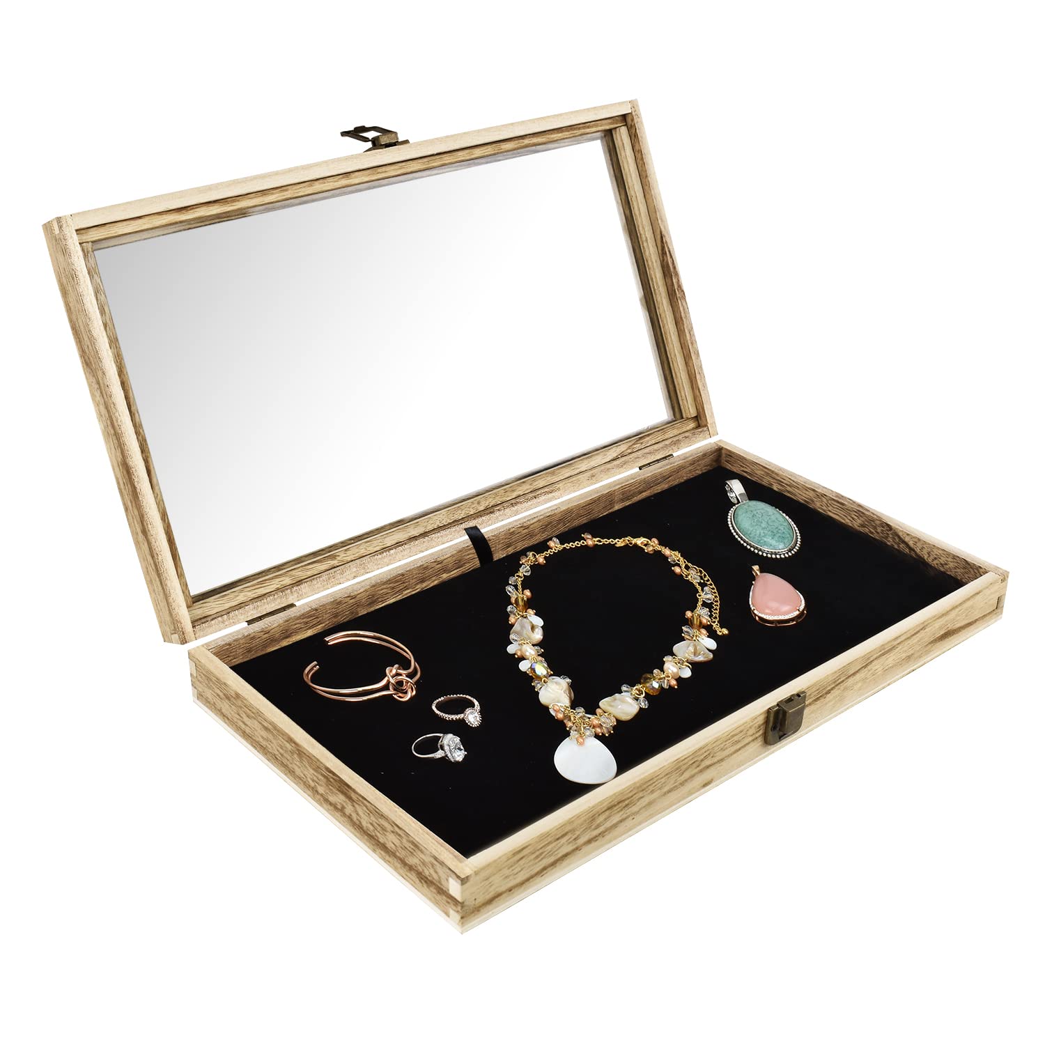 Description du produit Détails du produit : La vitrine à bijoux en bois est livrée avec un insert en velours noir amovible qui a une texture lisse qui est parfaite pour ranger des bijoux, des couteaux et des articles de collection. Vitrine Bijoux 18 Compartiments Chêne Mooca Présentoir à Bijoux Bois Verre Trempé - 18 Compartiments - 38x22cm - Vitrine Collection Vitrine Bois Verre Trempé Verrière artiste avec 4 demi archesBois : chêne Français (poncé et laissé brut)Verrière livrée en kit - montage facile et rapideH1300*L1880mmFixations : haut, bas et droiteMontants de 38*38mm Boite A Bijoux En Verre MOOCA Vitrine à Bijoux En Bois Verre Trempé Couvercle Supérieur Boîte à Bijoux En Bois Matériau et taille : bois ; l'ensemble : 38,1 x 21,6 x 5,1 cm (l x P x H) ; dimensions intérieures : 36,5 x 19,5 cm (l x P x H) ; dimensions du coussin amovible : 36,5 cm (l) x 19,5 cm (P) , Accessoires non inclus Coffres à Bjoux En Bos, Style Chnosere Vctorenne, Lot 2, Fat... Caractéristiques : ? La vitrine pour vos bijoux, accessoires et collections. Caractéristiques : fabriqué en bois avec un fermoir en métal robuste et livré avec un coussinet amovible en velours noir. Présentoir en bois : cette vitrine est idéale pour ranger des boucles d'oreilles, bagues, perles, épingles, bracelets, colliers, broches, médailles et plus encore. bois : chêne brut massif- verre trempé sécurit 8mm transparent- arches en chêne brut