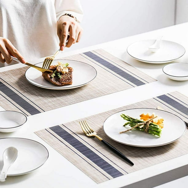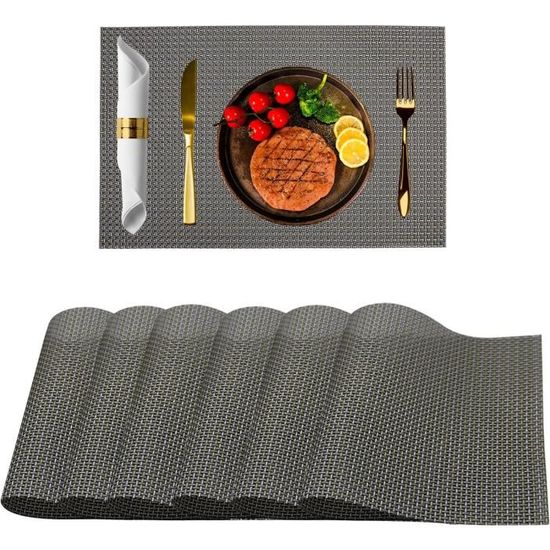 Qualité supérieure et durabilité : nos sets de table sont fabriqués à partir d'un mélange de haute qualité de 70 % PVC et 30 % polyester, ce qui garantit une qualité exceptionnelle et une longue durée de vie. Ils sont faciles à ranger et peuvent être pliés dans n'importe quelle forme pour s'adapter à vos armoires ou tiroirs. Avec leur design élégant et leurs caractéristiques fonctionnelles, ils sont un cadeau idéal pour les pendaisons de crémaillère, les mariages, les fêtes et les occasions spéciales. Accessoire Maison Pratique Lot De 6 Sets De Table Lavables Double Face Antid Rapant 43x30cm Gris Il suffit d'utiliser une éponge propre ou un torchon pour les nettoyer, ou de les laver doucement avec une brosse douce. Lumaca Lot De 4 Sets De Table Lavables,Set De Table, Résistants à La Chaleur, Antidérapants, Pour Table De Cuisine Et Restaurants,Gris Ils offrent une surface antidérapante, sont résistants à la décoloration et faciles à nettoyer et mettent en valeur votre expérience alimentaire. Entretien et rangement faciles : nos sets de table lavables sont faciles à entretenir. Ils résistent à des températures allant jusqu'à 80 ℃ et aident à garder les aliments au chaud. Lot de 4 sets de table en PVC résistant à la chaleur et lavables, antidérapants et faciles à nettoyer, pour intérieur et extérieur, fête, table à manger, 30,5 x...