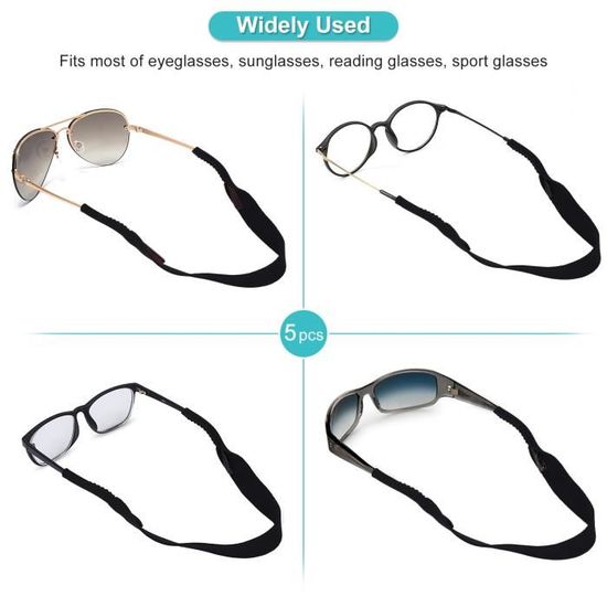 Il est utilisé pour les adultes, les juniors, les hommes, les femmes, les garçons, les filles, les lunettes de natation, les lunettes d'équitation, les lunettes de sécurité, les écrans faciaux, etc. Lot De 4 Sangles Élastiques Réglables Pour Lunettes De S'adapte à n'importe quel masque qui permet de remplacer le bracelet. En polyester élastique, elles s'adaptent à toutes les branches (même les lunettes de soleil ou de vue) et se règlent facilement entre 21 et 32 cm. Les embouts... Intérieur élastique durable avec couche extérieure tissée. Search faster with PicClick Visual Search. Sangles Ajustables Lunettes 4 Sangles Anti-perte Pour Lunettes De Soleil - Flottantes - 70cm Ajustables - 4 Couleurs - Pour Sports Nautiques Accessoire Plage Kayak Les sangles élastiques mesurent environ 109,2 cm de long et 3,2 mm d'épaisseur. Quatre sangles élastiques pour lunettes et deux verrous de cordon.