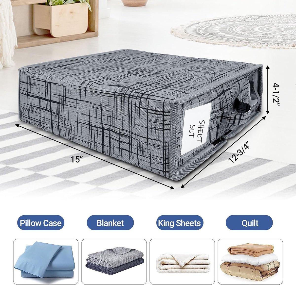 Lot de 4 organiseurs et de rangement de draps de lit, organiseurs de rangement 2 en 1 pour placard en lin (grand lit ou très grand lit), ensemble de draps pliables pour literie, vêtements, noir 【Lot de 4 organiseurs de feuilles de grande capacité】Excellent rapport qualité/prix avec un lot de 4 Design 2 en 1 de grande capacité pour accueillir votre parure de lit queen/king/double/jumeau, couverture, serviettes ou vêtements. Drap En Lin DETEIN Lot De 4 Organiseurs De Draps De Lit Pour Grand Lit Et Tru00e8s Grand Lit L 592154 Rangement Parure De Lit Drap En Lin DETEIN Lot De 4 Organiseurs De Draps De Lit Pour Grand Lit Et Tru00e8s Grand Lit Rangement Drap De Lit Boîte De Rangement Parure De Lit Nous vendons des vêtements tendances comme des robes, tops, bottoms. Dimensions : 32L x 22l x 4,5H centimètres · Matières : PA PE · Cher client, si vous avez des questions, veuillez nous contacter,Nous vous aiderons à le résoudre... Marque. Jolensoy ; Couleur. Noir ; Matériau. Tissu ; Fonctionnalité spéciale. Pliable ; Dimensions du produit. 42L x 32La x 3H centimètres
