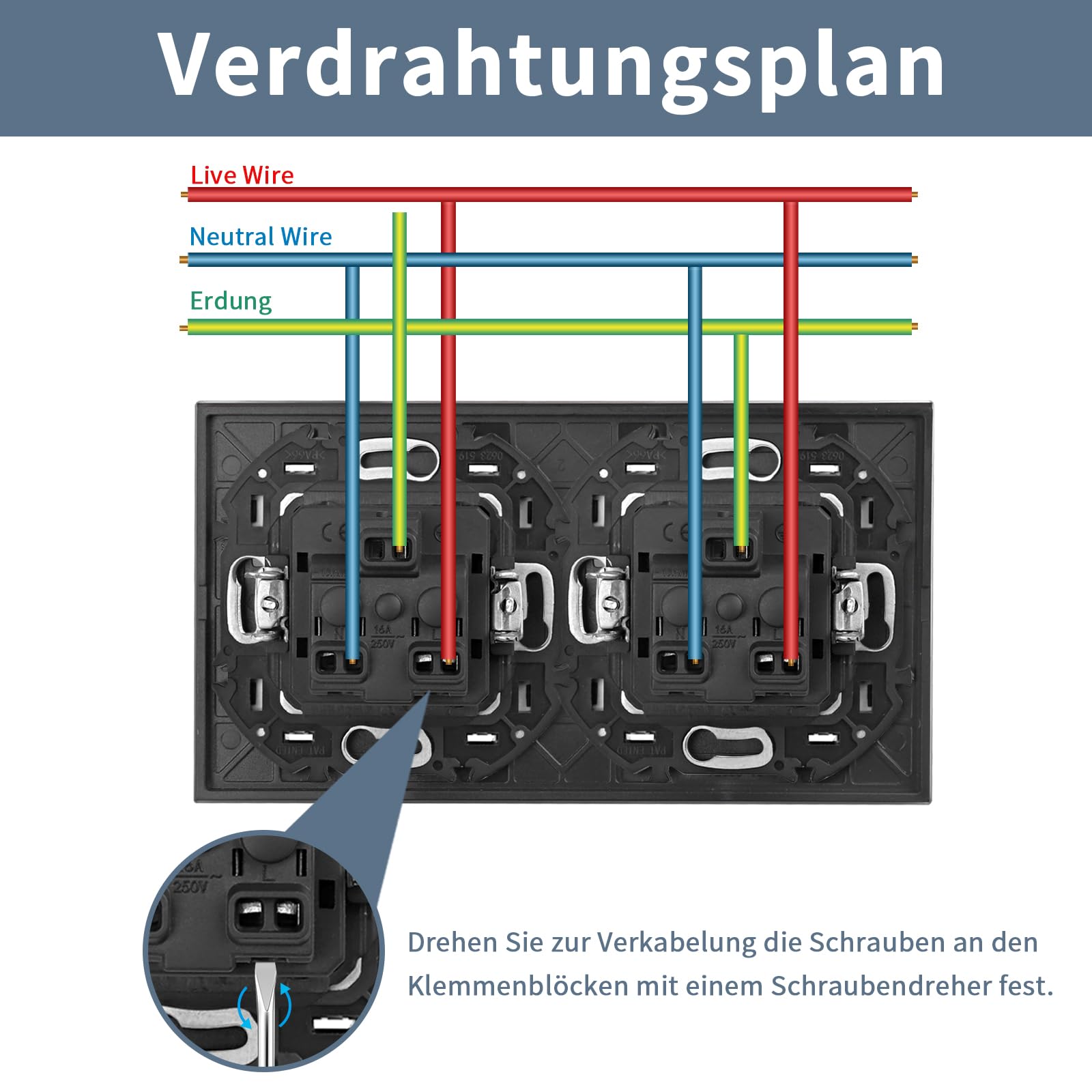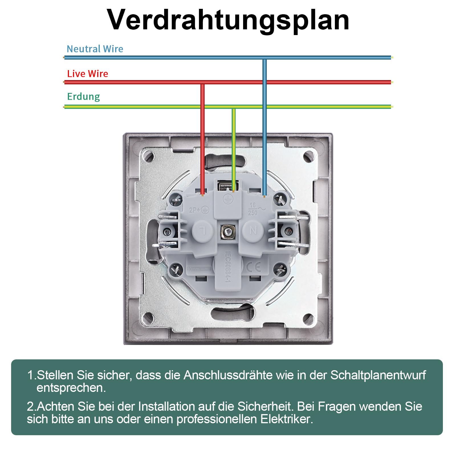 Facile à installer Alignez les touches de fonction sur les quatre clips du panneau de commande et appuyez fermement ensemble pour les assembler., Câblage facile 1., La version noire ne nécessite aucun outil, il suffit d'appuyer sur le bouton de câblage., 2., La version blanche utilise un tournevis pour tourner les vis de câblage. Protection de sécurité : prise Schuko avec protection électronique contre les courts-circuits et sécurité enfant, contacts de protection, en même temps Le boîtier extérieur est en plastique ignifuge et en verre. Installation à griffes latérales : la profondeur de la prise murale encastrée est de 30 mm, encastrée dans une boîte murale (profondeur 35 mm ou plus) avec des griffes de serrage ou des vis. CNBINGO Double Prise Encastrée Avec Griffes – Double Prise Schuko Avec Sécurité Enfant – Contact De Protection 16 A – Prise Murale Avec Cadre En Verre Nous vous proposons un choix varié d Prise murale s1, simple avec plaque centrale Schuko , encastrée, blanc... Retrait facile des touches de fonction Les touches de fonction peuvent être facilement retirées à la main après avoir ouvert un coin du bouton avec un outil. CNBINGO Prise en aluminium avec griffes de serrage - Noir - Simple Service client : il est recommandé de faire l'installation avec l'aide d'un professionnel. La prise standard de l'UE prend en charge la plupart des appareils ménagers, prise en charge AC 16 A 250 V. Veuillez nous contacter si vous avez des problèmes.