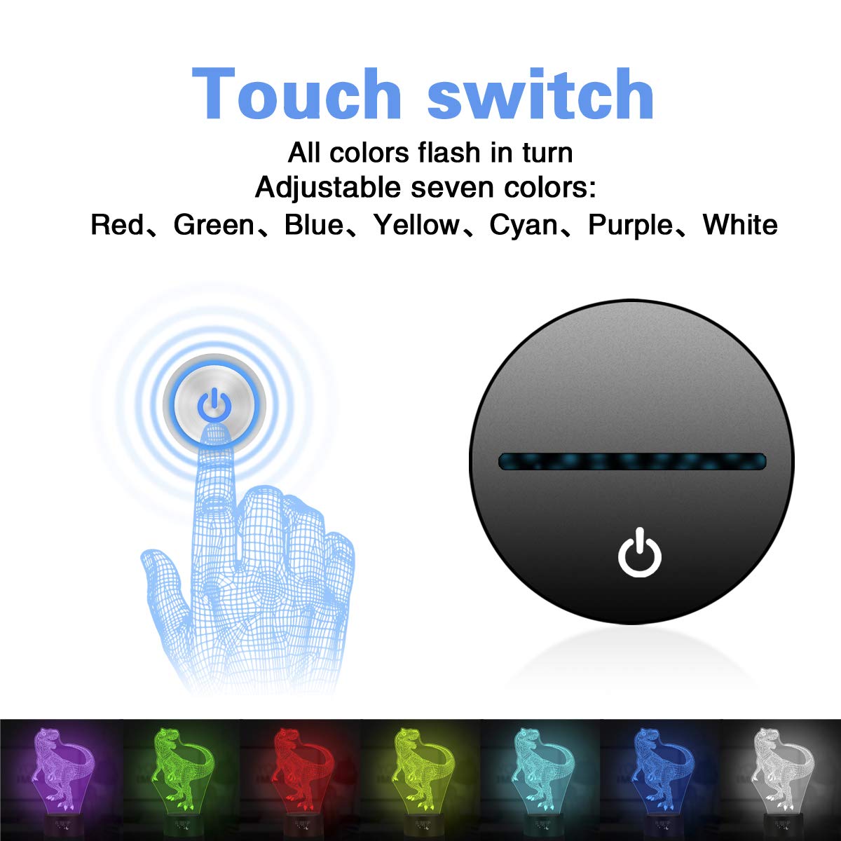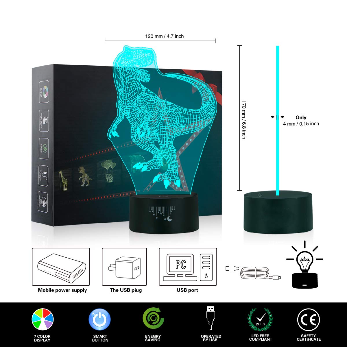 ❤ Sensitive FAÇONS DE FAIRE FONCTIONNER: Sensitive Touch Button, vous pouvez contrôler la lumière de nuit à distance depuis une longue distance ou un interrupteur tactile dans votre main; Allez-y et allumez votre vie. Lampe LED 3D - Dinosaure - Télécommande 7 Couleurs - Veilleuse Enfant... Attention: ❤ Plaque Acrylique est un graphique 2D, qui offrent un impact visuel 3D. Description du produit ❤ Il peut être utilisé comme une lumière décorative dans la chambre à coucher, salle d'enfant, salon, bar, boutique, café, cinéma maison, etc. Table Basse Dinosaure 3d Lampe, 7 Couleurs Illusion Optique Lampe De Veilleuse Tyrannosaure Lampe de bureau à led en forme de dinosaure pour enfants ❤3D CREATIVE DESIGN: Lampe de chevet à ambiance artistique innovante, conçue avec une variété de graphiques 2D, qui offrent un impact visuel 3D; Des effets d'éclairage uniques et une étonnante lampe de décoration optique à effet visuel rendent votre pièce plus intéressante. 7 Couleurs 3D Lampe de table à LED dinosaure en illusion d'optique avec fonction tactile,Trouvez les Détails sur Lampe, lampe de table de 7 Couleurs 3D Lampe de table à LED dinosaure en illusion d'optique avec fonction tactile - KONG SENG LTD ❤Acrylique planche unilatéral avec un film protecteur, veuillez retirer le film protecteur avant utilisation. ❤ 7 Changement de couleur: Rouge, Vert, Bleu, Jaune, Cyan, Violet, Blanc. La lampe 3D visuelle créative est une lumière d'ambiance artistique innovante, acrylique optique plaque de guidage de la lumière gravure d'une variété de graphiques 2D, impact visuel 3D, source LED, contrôle de processus SCM, interrupteur tactile sensible ou 7 couleurs changeantes h / 24 heures; Durée de vie LED: 10000 heures. Ne pas mettre la lampe dans des conditions supérieures à 60 ° C. ❤ La couleur de la lumière de l'objet réel serait légèrement différente de celle des images en raison de la différence d'affichage de l'ordinateur et de la luminosité de la lumière. ❤7 COULEURS: Cette lampe dimmable 3D peut être changée entre 7couleurs, vous pouvez choisir différents couleur selon votre humeur ou les environs. ❤USB Charge: La veilleuse créative peut être utilisée avec des USB, ce qui est très pratique pour l'utiliser; Le câble USB de cette lampe de table peut brancher un ordinateur portable, un ordinateur de bureau, une banque d'alimentation portable, un adaptateur de chargeur USB.