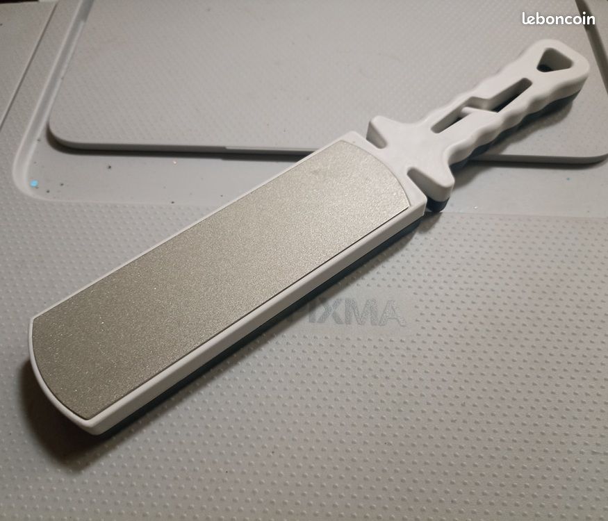 Caractéristiques : Fabriqué en matériau diamant durable. Il s'agit d'un aiguiseur de couteaux nouvellement amélioré, gardez votre coupe comme neuve pendant beaucoup, beaucoup plus longtemps avec un aiguiseur roulant. Il suffit de pousser doucement le rouleau, tout le monde peut aiguiser le couteau aussi rapidement que les experts. Obtenez une netteté sans le désordre, ni besoin d'électricité/eau Atout supplémentaire : l'aiguiseur manuel convient aussi bien aux droitiers qu'aux gauchers. Utilisation : pierre à aiguiser, jade Pierre à aiguiser fine pour polissage de diamant carré. Facile à transporter pour les couteaux de camping et de jardin., État : neuf., Matériau : diamant. Options de taille du grain : 80, 120, 150, 180, 240, 320, 400, 600, 800, 1000, 1200, 1500, 2000, 2500, 3000., Contenu : 1 plaque de diamant., Options de grain : 80 120 150 180 240 320 400 600 800 1000 1200 1500 2000 2500 3000., (seulement 1 pièce). Ahlsen Fusil à Aiguiser Diamant Aiguiseur à Couteaux Professionnel Un Revetement Diamante Barre 81327944 Dimensions approximatives : 17 x 7,5 cm. Broyage grossier et fin : 240 mailles ~ 800 mailles. Or vous pouvez maintenant aiguiser vos couteaux vous-même - et vous faciliter ainsi le travail dans la cuisine. Et pour votre sécurité : le revêtement en caoutchouc antidérapant assure une adhérence optimale et évite à l'aiguiseur de glisser. Fusil De Couteau à Aiguiser Opinel - Fusil à Aiguiser Revêtement Diamant - 13 Mm, Longueur 25 Cm - Affûtage Couteaux De Cuisine - Manche Hêtre, Lanière Cuir - Fabrication Française Pierre à Aiguiser Diamant