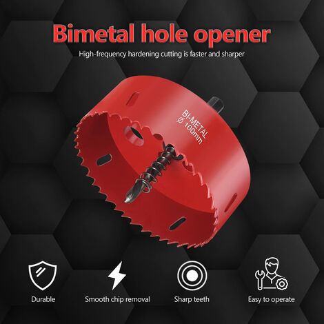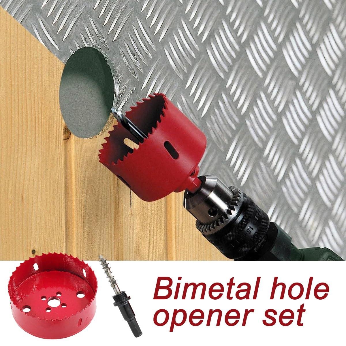 Le design du printemps Le trou dédié pour l'élimination des puces peut efficacement améliorer la vitesse de l'élimination des débris du trou. Le ressort sur le foret pousse automatiquement le disque hors de la scie après avoir foré le trou. 】 Coupe parfaitement l'acier inoxydable, le bois, l'aluminium, le PVC et les plastiques. Set de scies cloches bimétalliques M42 - 3 pièces - 60 mm 80 mm 100 mm - Convient pour Ce que vous obtenez 3Pcs M42 Bi-metal hole opener,the diameter is 60mm,80mm,100mm, hole opener has 3 arbor with spring,depth 37mm, shank diameter 10mm, twist bit long 45mm, tcenter drill 93mm, The cutting depth is 1-3/16(30mm) La conception spéciale des bords réduit la friction pour des coupes nettes en quelques secondes., EJ.life ouvre-trou de marbre Foret de scie cloche à tige triangulaire... Économisez l'achat de plusieurs emporte-pièces !, 🔧【3 tailles polyvalentes (60/80/100mm)】 Jeu complet (37mm de profondeur de coupe) couvrant la plupart des besoins - idéal pour les serrures de porte, les poignées de meuble, les installations de tuyauterie et projets DIY. 🔧【Système efficace d'évacuation des copeaux】 Plusieurs grands trous d'évacuation éliminent efficacement les copeaux de métal et de bois, même à haute vitesse. Outil essentiel pour les charpentiers, plombiers, électriciens et bricoleurs., Scie-cloche bimétallique] Tige de 10 mm, diamètre de 85 mm, 100 % acier au carbure haute résistance avec axe central.[Acier au carbure] Fabriquée en acier au carbure, elle coupe quatre à sept fois plus vite que l'acier rapide.[Affûtée et de haute qualité] Mécaniquement stable, résistante à l'usure et aux chocs, avec une longue durée de vie.[Conçue pour] La scie-cloche... Scie Cloche Placo Scie Cloche 15mm M42 Scie-cloches Bi-Métal Trepan Universelle Scie Cloche Bois Avec Hexagonale Adaptateur Pour Fer Aluminium, Cloison Sèche, Tuyau, Plastique Métaux 1pcs Scie Cloche 80mm parfait pour installer des serrures, des boutons dans les portes et les armoires ou le forage des trous de plus grand diamètre à travers les bureaux, etc.