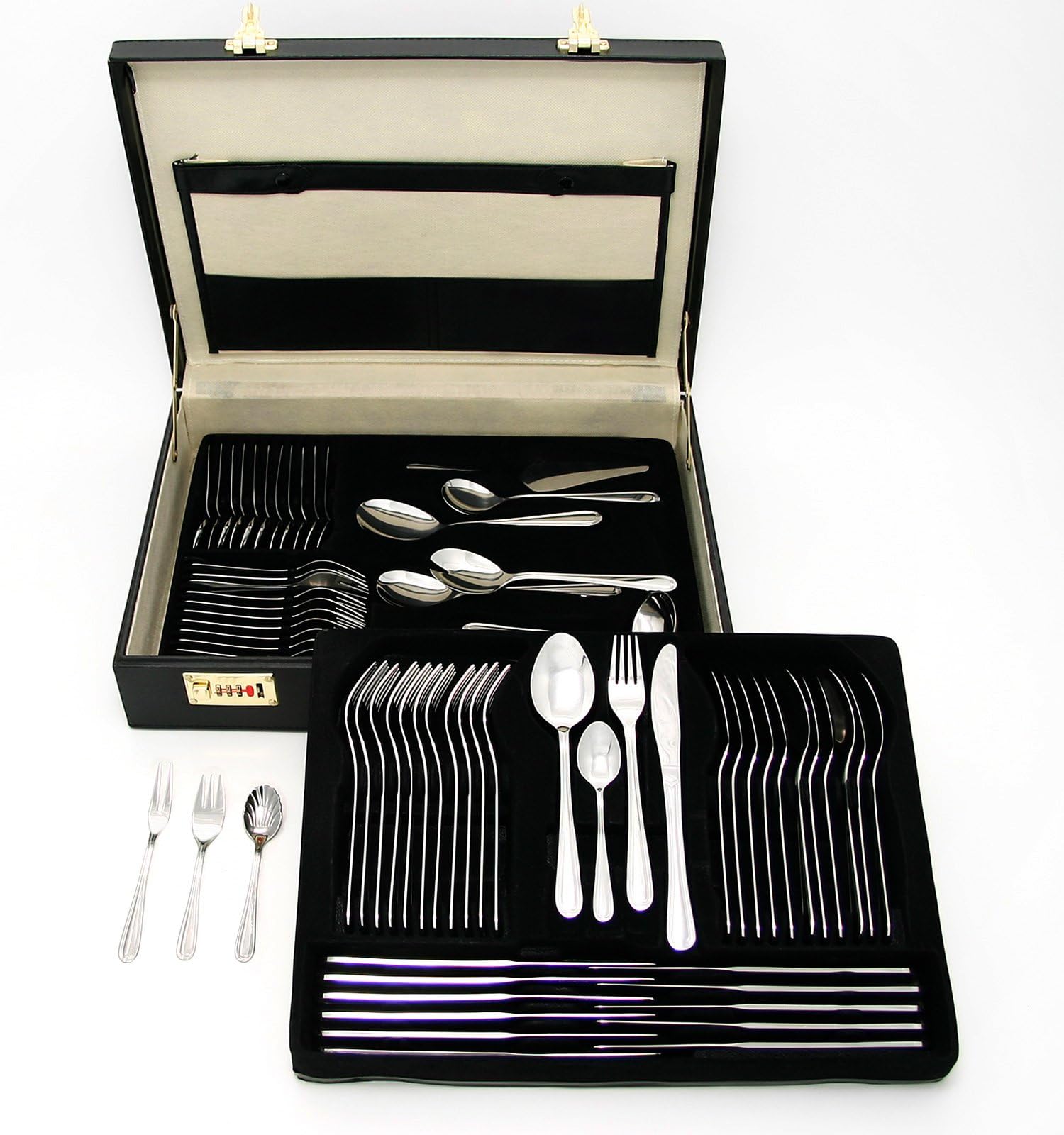 un markantes couverts et solide pour tous les jours. Idéal pour les restaurants et grandes fêtes fixes ou autres dans lesquels le célèbre série Nuremberg ne pouvant pas couverts la grande qualité en acier forgé pour un poids relativement élevés, ce qui les Couverts bien dans la main à adopter. Avec poignée noire en plastique, rivetée 3 fois Nos couverts forgés réalisés en acier inoxydable de haute qualité ajouteront à votre table une note d'authenticité et d'élégance. La qualité des matériaux utilisés est une garantie de durabilité dans le temps GRÄWE Ménagère 100 pièces pour 20 Personen. 21,5 cm) fourchettes 20 (environ 20 cm) 20 à soupe (env. GRÄWE Service de couverts pour 18 personnes, 90 pièces, avec range-couverts - couverts de table forgés avec manches noirs - série Couverts forgés pour 18 personnes dans un coffret à couverts 15 cm) fourchettes à dessert 20 (env. lourde de qualité forgées - Matériau: acier inoxydable chromé 18% ) - noir avec rivets - Passe au lave-vaisselle- se compose de: 20 couteaux crantés (env., 65 g (env. GRÄWE Ménagère Nuremberg 66 pièces 12 personnes en acier inoxydable manche noir rustique qualité lourde passe au lave-vaisselle poli à la main Grawe Couverts Professionnel Sonew Service De Couverts à Dessert 7 Pièces / Ensemble Vaisselle En Couverts Noirs Inox Organisez Vos Couverts avec un range-couvert - Le Blog Accessoires de... toutes les poignées sont nachgearbeitet à la main, elle à de légères différences entre les parties peuvent détacher la lame fine assure une bonne Netteté du Messers.