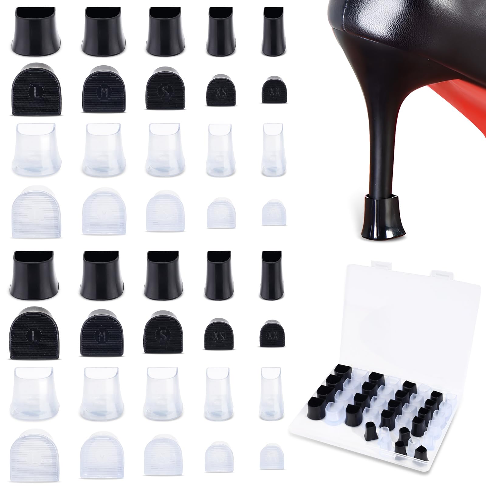 Protection Talon Chaussure Lot De 12 Paires De Protections Pour Talon Haut - 2 Tailles - Bouchons D'évier Et Capuchons De Réparation De Talon Antidérapants Pour Marcher Sur L'herbe, Le Gravier, Les Zones Humides (taille Protege Talon Silicone Doc Martens Description du produit Spécifications : Couleur : comme sur la photo Matériau : TPU Dimensions : L : 1,66 x 1,6 x 1,6 cm, M : 1,66 x 1,4 x 1,4 cm, S : 1,66 x 1,2 x 1,2 cm, XS : 1,66 x 1 x 1 cm, XX : 1,66 x 0,8 x 0,8 cm Contenu de l’emballage : un certain nombre de protections pour talons hauts Remarque : Les mesures étant prises à la main, la taille et le poids peuvent varier légèrement. Assurez-vous que la bonne taille est utilisée pour éviter de glisser ou de tomber. Bouchons & capuchons de protection plastique JAR 24pcs Embouts de Talons Hauts Antidérapants pour la Réparation de... Conception pratique: cette couverture de chaussures à talon haut adopte une conception antidérapante, aidant à minimiser le bruit lors de la marche et rend vos pas plus silencieux et plus stables. Application large: les couvertures de chaussures à talon élevé conviennent à diverses activités de plein air, y compris les mariages extérieurs, l'herbe, les routes de gravier, les zones humides, les routes pavées et d'autres routes inégales. La petite taille de taille rend les bouchons de talons stables et ne tombe pas, absorbant fermement le talon pour assurer la stabilité et ne tombe pas. Matériel fiable: en matériau TPU de bonne qualité, il est robuste et résistant à l'usure, pas facile à casser et a d'excellentes propriétés antidérapantes et absorbant les chocs, vous permettant de marcher sans souci. Veuillez faire attention à la taille des talons hauts avant de passer une commande. Toute l'inspiration mode et les dernières tendances sont en ligne sur SHEIN. Avertissement De Sûreté Soyez prudent lorsque vous marchez sur des surfaces inégales.