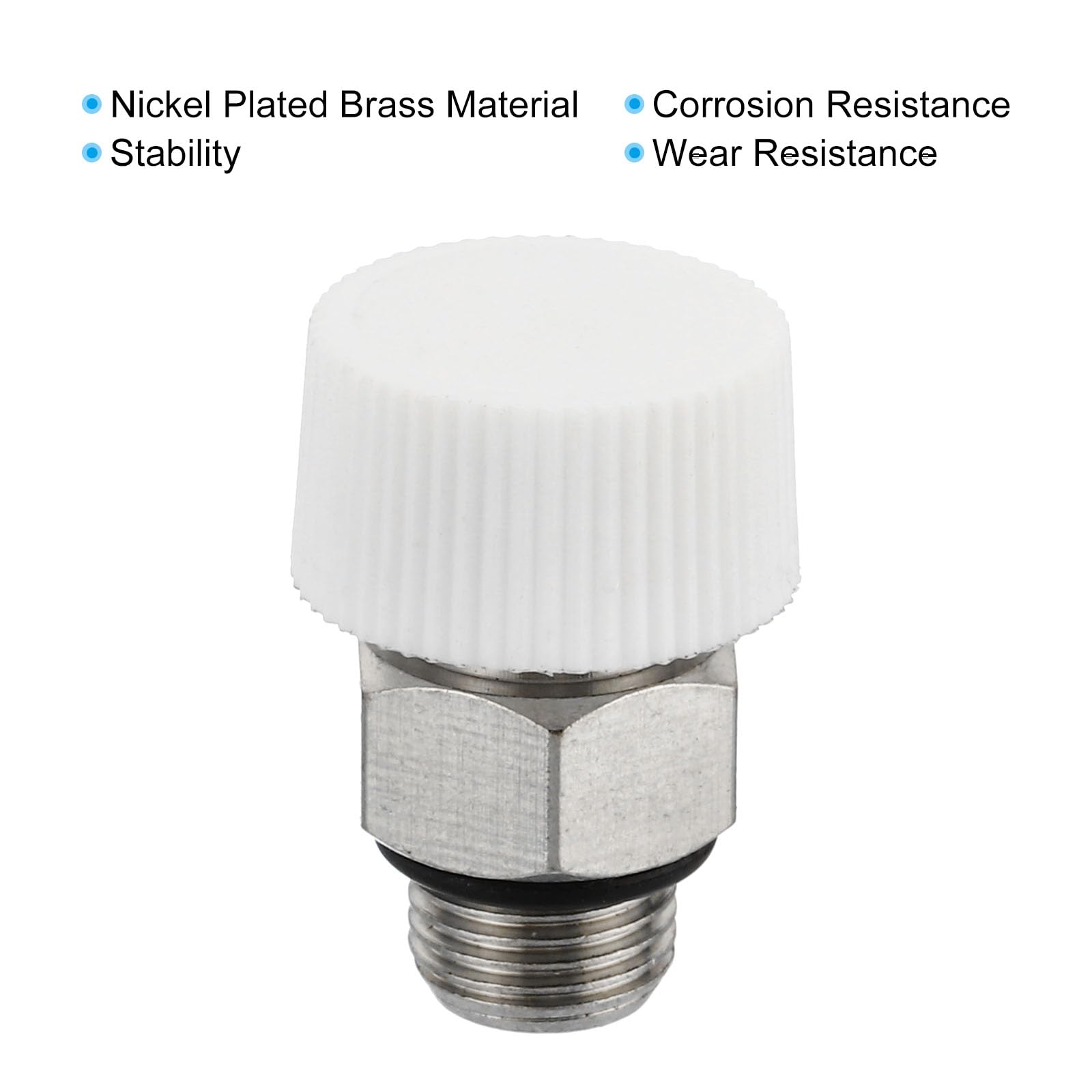 Spécifications Couleur: argent, blancMatériau: Laiton nickelé, NylonDimension totale: 24x19mm/0,94x0,75pouce (OD*H)Diamètre du filetage: 1/2 mâle (20,955mm/0,825pouce)Max. Pression de travail maximale: 1,0MPa (10 bar)Liste d'emballage: 2 x Valve d'aération de radiateurAvantageRéalisé en cuivre nickelé, il a la caractéristique de stabilité, de haute dureté, de résistance à la corrosion et à l'usure. Remarque: Veuillez commander en fonction de la taille souhaitée. Bouchon Purgeur d'Air de Radiateur à Bec Orientable mâle 15x21 (1/2... La vanne de Purge d'air pour radiateur est amplement employée dans les systèmes de chauffage par radiateur, également connue sous le nom de Purgeur d'air. Avantage: Fabriqué en cuivre nickelé, il se caractérise par sa stabilité, sa grande dureté, sa résistance à la corrosion et à l'usure. Livré avec joint torique Application: La vanne de purge d'air des radiateurs est largement employée dans les systèmes de chauffage des radiateurs, également connue sous le nom de purgeur d'air. Mode d'emploi: Facile à employer, vissez le radiateur à l'aide d'une clé de vanne ou d'un tournevis. Températures de travail max: +120°C; Pression de service max. PATIKIL 1/2 Pouce BSP Mâle Filet vierges Capuchon Manuel Ventilateur Radiateur Gaz PATIKIL 1/2" BSP Mâle Filet Manuel Radiateur Air Ventilation Bouchon Vanne, 2 Paquet Nickel Plaqué Laiton Bouchons Pour Radiateur Chauffage, Argenté Blanc Purge Radiateur Purgeur d'air de radiateur - manuel - mâle - à soupape d'évacuation RBM... Couleur: Argent, Blanc; Matériau: Laiton nickelé, Nylon; Dimension globale: 24x19mm/0., 94x0., 75pouce (OD*H); Diamètre du filetage: 1/2 Male (20., 955mm/0., 825pouce); Températures de fonctionnement max.