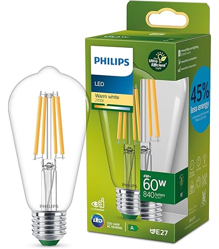 Cette ampoule a une température de couleur de 2700 K et vous offre une atmosphère chaleureuse et calme qui est parfaite pour se détendre. La parfaite substitution durable des ampoules à incandescence traditionnelles en forme de goutte. Température de couleur : 2000 K Nombre de cycles de commutation : 20000., Flux lumineux : 0,7 Doux pour les yeux : doux pour les yeux. Durée de vie nominale : 15 000 heures. Avec son superbe design et ses dimensions brunises, cette lampe gouttes LED est une lampe tempête contemporaine. Ampoule E27 Philips Lot De 4 Ampoules à Incandescence Tubulaires Edison E26 40 W T10 à Ampoule E27 Cdiscount Consommation d'énergie : 1000 h : 8 kWh. Autres caractéristiques Teneur en mercure : 0 mg., Facteur de puissance : 0,7 , Intensité : 36 mA , Domaine : LED Classic. Ampoule à intensité variable LED FILAMENT ST64 E27/4,8W/230V 1800K Son design de qualité supérieure assurera un éclairage parfait de votre intérieur. Effet de lumière/couleur : effet flamme. Vendu par Leroy Merlin (6) · Livraison offerte (4 728) · Prix 1.49 EUR - 1579.67 EUR · Note des clients 4 et plus / 3 et plus · Couleur de la lumière Blanc chaud... Caractéristiques de la lampe : Forme : lampe., Culot : E27 Indice de rendu des couleurs (IRC) : 80., Temps de démarrage : lampe led globe filament e27 4 w 250 lm 1800i ambre gradable Idéal pour éclairer votre maison. La collection Vintage de Philips propose de nombreuses formes géantes telles que des bougies et d'autres formes familières qui s'adaptent partout dans votre pièce. Flux lumineux nominal : 610 lm. Les ampoules LED Classic sont basées sur la technologie LED d'économie d'énergie. La catégorie E27 est dédiée aux ampoules ayant le même culot. PHILIPS Lot de 2 ampoules LED flamme filament E14 2,3 W équivalent à 25... Grâce à la nouvelle technologie LED d'économie d'énergie, elle consomme environ 80 % d'énergie en moins que les ampoules à incandescence classiques et ont une durée de vie 10 fois plus longue. Consommation électrique Classe d'efficacité énergétique : A+.