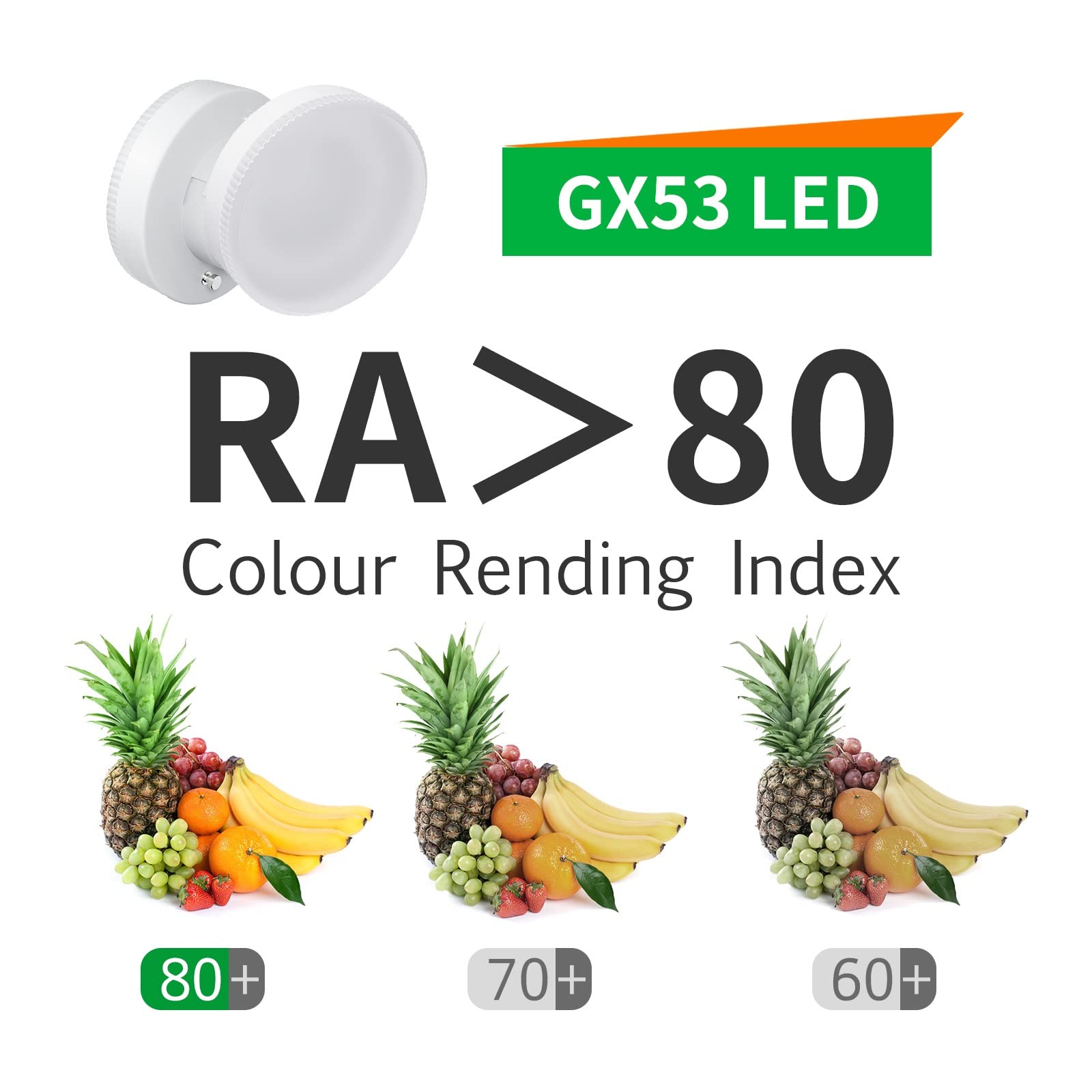 Rendu des couleurs élevé pour des couleurs vives (IRC > 80) Technologie LED moderne - Durée de vie extrêmement longue jusqu'à 35 ans Ampoule LED GX53 7 W 3000 K, blanc chaud, éclairage Gx53 non variable, sans scintillement... Ampoules Led Ampoule 9W équivalent à 57W - Blanc Naturel 4000K | Leroy Merlin Led Gx53 Ampoule a led gx53 au meilleur prix | Leroy Merlin Faible consommation d'énergie : jusqu'à 90 % d'économie d'énergie par rapport aux ampoules traditionnelles