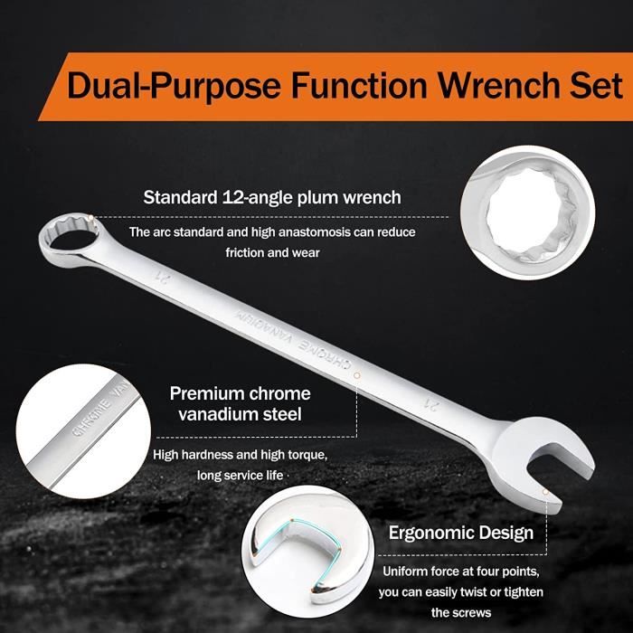 Lot de 6 clés mixte / Jeu de 6 clés de serrrage, clé à anneau et à fourches combinés - Fabriqué en Acier (Chrome Vanadium), têtes et oeil 12 pans inclinées à 15° - Diamètre 8 à 19 mm - Finition satinée - Tête et œil orientable 90° à -90° - Rotation cliquet à 180° - Dimensions: 8-9-10-11-13-14-17-19 mm - Clé mixte à cliquet articulée 6 pièces de 8mm à 19mm en Chrome Vanadium sur support Ce jeu de 6 clés mixte à cliquet articulée métrique également appelée clés de serrage ou encore clés à anneau et clés à fourche combinés permet le serrage ou le desserrage de tous types d'écrous. Garantie : Parce que la satisfaction client est une de ses priorités, RHINO a mis en place une garantie d’échange sur la quasi-totalité de sa gamme, dont plus de la moitié sans limitation dans le temps. Ils assurent une forte résistance aux chocs, une haute dureté et longue durée de vie. N'hésitez pas à nous demander plus de précisions sur ce jeu de clés mixed à cliquet, sa garantie ou ses modalités de livraison depuis le site . , outils pro des artisans tce, est expert dans l'outillage spéciall=isé des plaquistes, les outillages des peintres, et les équipements du jointeur RHINO - Clé Mixte 8 mm, clé de Serrage, clé à Anneau et clé à Fourche combinés - Diamètre 8 mm - Haute qualité - Fabriqué en Acier (Chrome... 4,44,4 sur 5... Clé Mixte à Cliquet Articulée Métrique Diamètre 17mm Longueur 191mm Cle Plate Lot de 6 clés mixte Fabriqué en Acier (Chrome Vanadium) Diamètre 8 à 19 mm Finition satinée Tête et œil orientable 90° à -90° Rotation cliquet à 180° Dimensions: 8-9-10-11-13-14-17-19 mm Référence : 003222 RHINO veille à sélectionner des matériaux de qualité supérieure pour sa gamme d’outillage à main : Acier S2, Chrome Vanadium, Acier Haute Qualité. Jeu de 6 clés mixtes à cliquet MOB Confiance, fiabilité, fonctionnalité sont les maîtres-mots de cette gamme. Un soin particulier est porté sur la finition et le design, pour un résultat qualitatif et séduisant. Lot de 6 clés mixte / Jeu de 6 clés de serrrage, clé à anneau et à fourches combinés - Fabriqué en Acier (Chrome Vanadium), têtes et oeil 12 pans inclinées à 15° - Diamètre 8 à 19 mm - Finition satinée - Tête et œil orientable 90° à -90° - Rotation cliquet à 180° - Dimensions: 8-9-10-11-13-14-17-19 mm - Clé mixte à cliquet articulée 6 pièces de 8mm à 19mm en Chrome Vanadium sur support