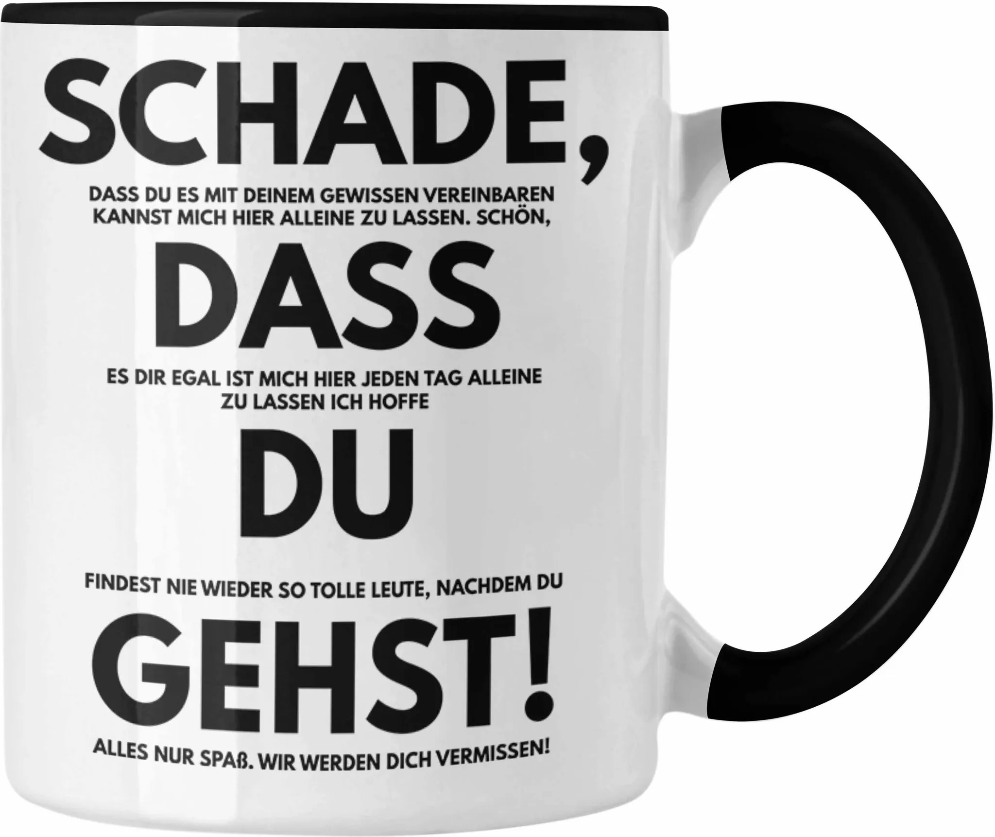 Qualité durable, sans substances nocives et convient également pour une utilisation en restauration – pour un moment de plaisir parfait à la maison ou au bureau. Design classique : commencez la journée avec plaisir. Imprimées des deux côtés et passent au lave-vaisselle : nos tasses avec inscription en allemand sont testées sur 2 000 lavages sans perte de qualité. Parfait également comme surprise pour la fête des mères ou la fête des pères. ABSCHIED KOLLEGEN: SCHADE, dass du gehst - Das Notizbuch zum Abschied Avec une capacité de 330 ml, ils offrent la taille parfaite pour votre café ou thé préféré. Grâce à leur haute résistance au lave-vaisselle, elles résistent facilement à plus de 2 000 lavages (testés selon la norme BS EN 12875-4), sans perte de qualité de pression. Idée cadeau idéale - Les tasses à café imprimées sont d'excellents cadeaux pour toutes les occasions : mariage, anniversaire, Noël. Les tasses Mister Merchandise convainquent par leur qualité et leur durabilité impressionnantes. Passe au micro-ondes et durable, avec des couleurs éclatantes. Un cadeau personnel et amusant qui fera sourire vos amis et vos proches. Abschiedsmagnet Papageitaucher: Jetzt liebevoll grüßen La durabilité des tasses à café est particulièrement remarquable : elles passent non seulement au lave-vaisselle, mais aussi au micro-ondes. Tasse Avec Inscription En Allemand Schade Dass Du Gehst - Cadeau Trendation - Schade Dass Du Gehst Kissen Geschenk zum Abschied... Avec cette tasse, vous offrez un plaisir qui reste longtemps dans les souvenirs – et cela à de nombreuses occasions comme la fête des mères, la fête des pères ou tout simplement comme ça. Idéal comme cadeau d'adieu ou petite attention pour toutes les occasions. En outre, ils sont exempts de substances nocives et de qualité alimentaire, de sorte que vous pouvez en profiter en toute sécurité. Les dimensions – 82 mm de diamètre et 95 mm de hauteur – rendent la tasse maniable et agréable à utiliser. Diamètre : 80 mm, hauteur : 96 mm, capacité : 330 ml