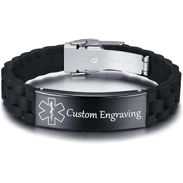 ★ SPÉCIFICATIONS DU PRODUIT: MATÉRIAU - Silicone et acier inoxydable 316L, résistant à la corrosion, résistant aux allergies aux métaux / latex, résistant aux températures élevées, imperméable à l'eau, confortable à porter, adapté à un usage quotidien, en plein air ou au sport. Pourquoi acheter chez nous? Gravure au laser gratuite de première qualité: lettrage en gras et contrasté Comprend une carte médicale d'urgence gratuite avec pochette Comprend un coffret cadeau de qualité supérieure Carte médicale d'urgence La carte médicale d'urgence dispose de plusieurs salles pour les informations personnelles, les conditions médicales, les médicaments, les contacts d'urgence et les allergies. Comment personnaliser Cliquez sur le bouton jaune à droite 'Personnaliser maintenant' Remplissez vos informations de gravure exactement comme 'votre nom, toutes les conditions que vous pouvez avoir, allergies médicamenteuses et alimentaires, médicaments que vous prenez, vos contacts en cas d'urgence (ICE)', etc. Il aide à sauver des vies et offre une tranquillité d'esprit inestimable en indiquant aux premiers intervenants la meilleure façon de prendre soin de vous en cas d'urgence. Bracelet Médical Personnalisé Gravé En Silicone Réglable une urgence leur permettant de vous soigner rapidement et en toute sécurité. Le porte-carte est étanche à l'usure et à la corrosion qui protège efficacement votre carte. Ce n'est que le format de carte de crédit après pliage qui peut être facilement mis dans votre portefeuille. ◆ MOWOM Medical ◆ Les bijoux MOWOM Medical ID sont destinés aux personnes ayant des problèmes médicaux cachés tels que le diabète, l'épilepsie, l'asthme, l'hypothyroïdie, les problèmes cardiaques, les allergies, le lymphoedème, etc. Cliquez sur 'Ajouter au panier' Si le service de personnalisation personnalisée ne peut pas satisfaire votre demande, veuillez Contacter le vendeur après votre commande. MOWOM Medical Custom Gravé Silicone Réglable Sport Nom ID Identification Alerte Bracelet Médical Pour Hommes Femmes Enfants En Acier Inoxydable Caoutchouc- (Violet *Personnaliser Maintenant (Taille de la carte de crédit après avoir plié) La carte porte un logo bleu 'Étoile de la vie' facilement reconnaissable par les intervenants médicaux.