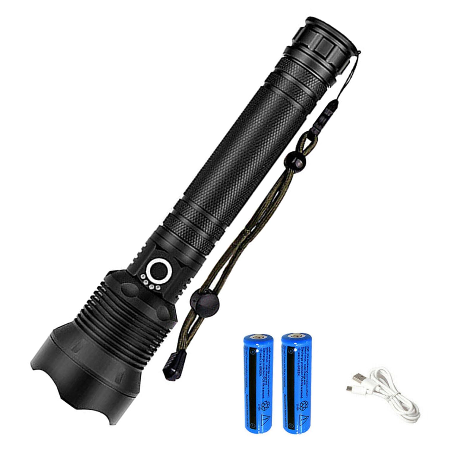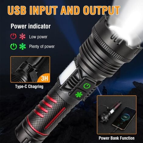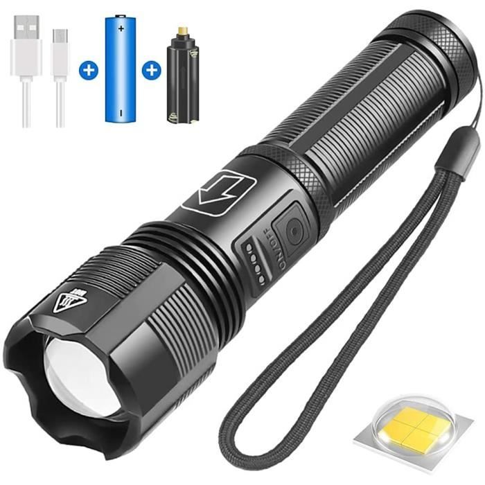 Super lumineuse et excellente durée de fonctionnement : cette lampe torche LED rechargeable est dotée d'une LED longue faisceau, 10 fois plus lumineuse que la lampe frontale de voiture. grafik Pekkadillo Geçici top lampe tactique amazon yeri doldurulamaz Çok fazla d Lampe Torche Étanche Extérieure à LED Haute Luminosité Rechargeable USB... La lampe torche LED haute performance peut être utilisée comme une banque d'alimentation mobile, vous donnant la tranquillité d'esprit même si votre téléphone est à court d'énergie. Les lampes de poche tactiques haute puissance peuvent être utilisées pour la chasse, le camping, la spéléologie, la pêche, le vélo, la randonnée nocturne, la recherche et le sauvetage. Lampe torche LED super lumineuse jusqu'à 20 000 lumens. Imperméable et durable : la lampe torche rechargeable est fabriquée en alliage d'aluminium de qualité aérospatiale, qui a les fonctions d'étanchéité, durable, dissipation efficace de la chaleur, anti-chute. Cette lampe de poche tactique à haute luminosité super lumineuse ajuste le diamètre de la lumière en utilisant le haut, changez facilement entre le projecteur et le spot. Distance d'irradiation jusqu'à 1000 m, et la durée de vie est jusqu'à 90 000 heures. Charge rapide de type C et banque d'alimentation : charge rapide en seulement 2 heures avec n'importe quel port USB. Il est parfait pour camping, randonnée et urgences. [5 Modes & Réglage Pratique de l’arrêt & Zoomable] Cette lampe torche dispose de 5 modes d'éclairage: Haut / Moyen / Bas / Stroboscope / SOS. Vous pouvez l'éteindre en appuyant longuement sur le bouton pendant 3 secondes Lampe Torche De Poche LED Rechargeable 2000 Lumens Puissante Etanche Batterie FR Contenu : 1 lampe torche tactique LED rechargeable, 1 câble USB de type C, 1 cordon (dragonnes), 1 boîte d'emballage pour lampe de poche, 1 manuel de l'utilisateur (français non garanti).