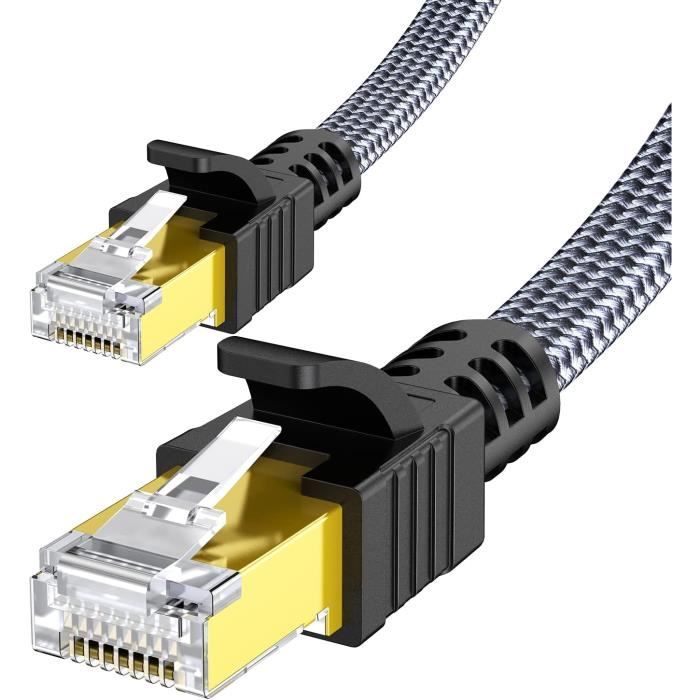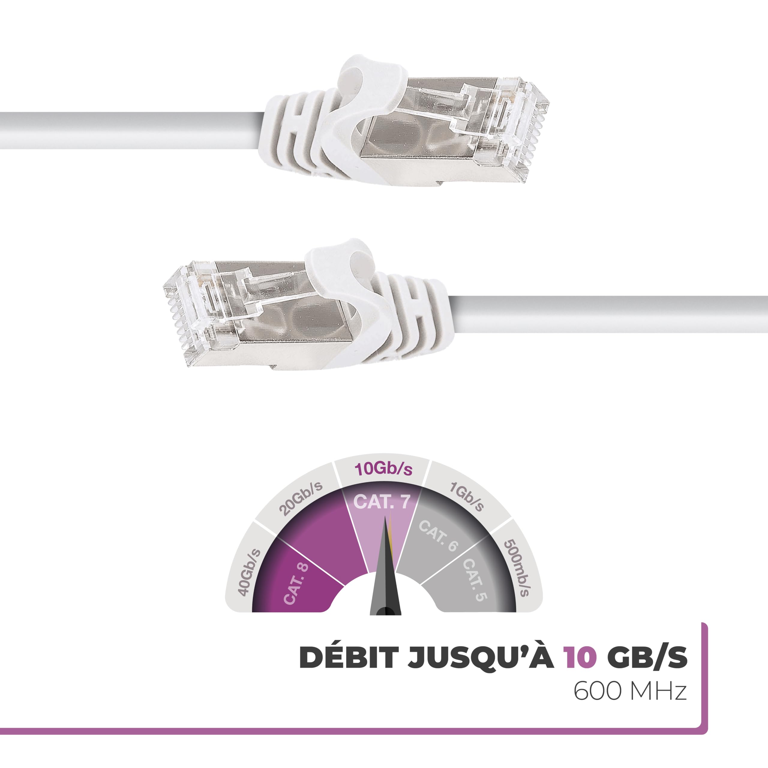 Notre Câble LAN Cat7 offre non seulement une grande vitesse et fiabilité, mais aussi une installation facile. Les connecteurs universels RJ45 CAT 6A permettent... Le câble Ethernet Cat 7 est un câble STP qui réduit les interférences et le bruit. Rétrocompatible avec d'autres variantes CAT, par exemple Cat., 5, Cat., 5e, Cat., 6, Cat., 6a, etc. Câble Ethernet 3m, Cat 7 Cable RJ45 Haut Débit 10Gbps 600MHz, câble Câble Ethernet Plat Nylon Cat 7 3m, Snowkids RJ45 Haut Débit 10Gbps 600MHz STP LAN Compatible Avec Routeur Modem Switch TV Box PC PS4/PS5 Consoles De Jeux Cable Rj45 3m Fiable : profitez d'une vitesse de transfert allant jusqu'à 10 Gbit/s et d'une fréquence de fonctionnement de 600 MHz, idéal pour le streaming, les jeux et l'Internet rapide au bureau et à la maison. Utilisation : le câble est parfait pour connecter une large gamme d'appareils dans un réseau à grande vitesse, y compris des modems DSL, des routeurs, des commutateurs, des panneaux de brassage et des consoles de jeux populaires telles que la Playstation PS4, PS5 et Microsoft Xbox Series X et S. Facile à utiliser : conçu comme un câble STP (paire torsadée blindée), il minimise les interférences et le bruit, ce qui le rend idéal pour une utilisation dans des environnements réseau à haute fréquence. Parfait également pour la Playstation PS4, PS5, Microsoft XBox Series X et S. Le câble patch Redstar24 a une gaine souple (isolation sans halogène) qui confère au câble Ethernet une flexibilité maximale. Digoloan Câble Ethernet 20m, Cat 6/Cat 6A Cable rj45 POE Gigabit Câble... Le connecteur RJ45 plaqué or empêche la corrosion des surfaces de contact.