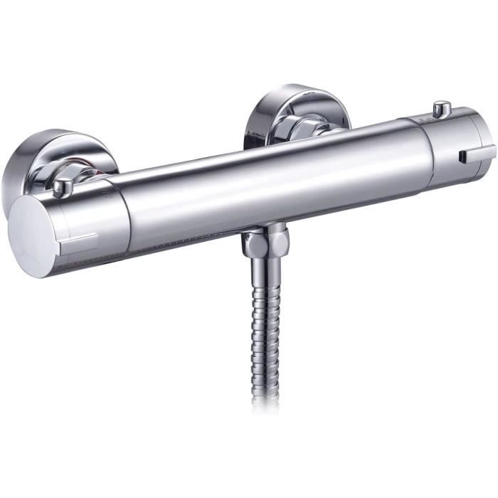 Le robinet mitigeur thermostatique pour baignoire et douche a été fabriqué en laiton massif de haute qualité. Ne jamais utiliser de produits de nettoyage abrasifs ou de produits chimiques sur chrome., 1., Installation sur le pont, les pieds inclus à la fois entrée et sortie avec G3/4, réglable la distance entre les entrées chaudes et froides de 178 à 182 mm (norme britannique 180 mm), connt à la plupart des salles de bains britanniques, facile à installer., 2., Mitigeur bain/douche exposé avec bouton de verrouillage de sécurité 38 C anti-brûlure., 3., Laiton massif de haute qualité, surface chromée impressionnante, sensation agréable au toucher et facile à nettoyer., 4., Le produit a été intégré dans une cartouche thermostatique qui peut éviter que l'eau ne soit trop chaude soudainement. La plage de température réglable est de 20 à 50 C., 5., Le robinet mitigeur thermostatique pour baignoire et douche est livré avec un kit de douche., 6., Nous offrons une de 10 ans et une politique de de 30 jours pour r à nos clients sans aucun souci. Mitigeur bain/douche thermostatique Cavally - Brico Dépôt Le robinet mitigeur thermostatique pour baignoire et douche est livré avec un kit de douche. Robinetterie Salle De Bain Brico Dépôt KINGBATH™ Robinet Mitigeur Rond Thermostatique Exposé Pour Mitigeur Thermostatique Leroy Merlin Le robinet mitigeur thermostatique parfait pour baignoire, douche, simple, exceptionnellement bien fait et sera du plus bel effet dans n'importe quelle salle de bain. Le mitigeur thermostatique pour baignoire et douche avec verrouillage de sécurité à 38 ℃ anti-brûlure. Finition brillante en chrome poli, avec une combinaison de lignes épurées et raffinées pour un style haut de gamme. Mitigeur Thermostatique pour Douche, Robinet Salle Bain, Mitigeur Thermostat, Murale Robinet...
