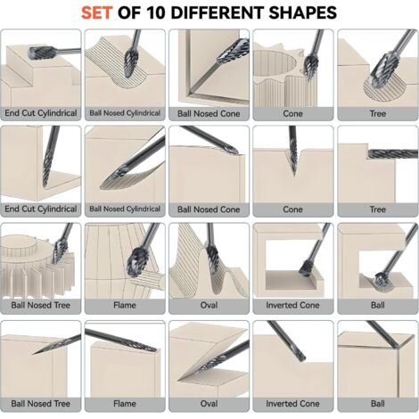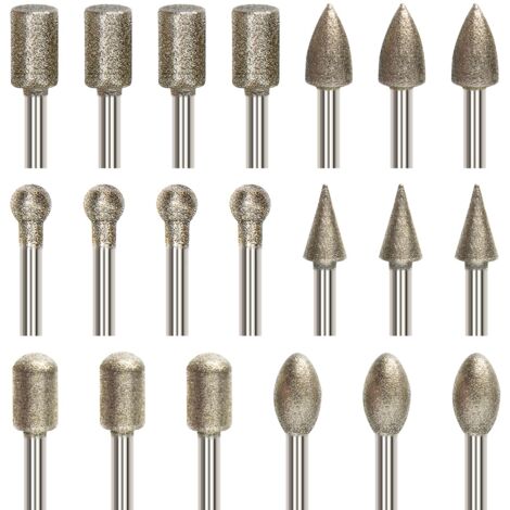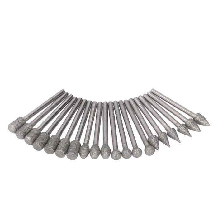 Lot de 20 fraises rotatives à haute dureté en acier pour sculpture, polissage Description du produit : Matériau : fabriqué en acier rapide de haute qualité avec une dureté élevée, une haute résistance à l'usure et une haute résistance à la chaleur. Outils professionnels : il y a 20 fraises rotatives de différentes formes et tailles dans ce lot pour répondre à vos différents besoins de création artisanale Économie d'énergie : la lime rotative et la texture sont profondes, la friction peut être considérablement améliorée au contact du bois, améliore l'efficacité et économise de l'énergie. 20Pcs Fraise diamantée pour les projets d'artisanat, la sculpture sur verre, le meulage, le polissage, la gravure Matériaux - Fabriqués à partir de particules de diamant avec un sable uniforme, épais et durable, résistance à l'usure, haute dureté et résistance aux chocs. Formes variées Garosa fraises de coupe Tête de meulage en acier au tungstène facile à... AHLSEN 20 Pcs Ensemble De Fraises Rotatives Diamant, Jeu De Mèches De Outils professionnels : il y a 20 fraises rotatives de différentes formes et tailles dans ce lot pour répondre à vos différents besoins de création artisanale. KEM - Jeu de mèches de meulage 20 pièces meules de meulage ensemble de Beaucoup plus efficace que le polissage manuel Couleur : conforme à l'image., Tige : 3 mm., Longueur : 39 mm., Contenu : 20 fraises rotatives. Large application : peut être utilisé pour traiter le métal, le verre, le jade, le plastique, le bois pour la gravure, le chanfreinage, le rainurage, l'alésage et d'autres opérations de gravure
