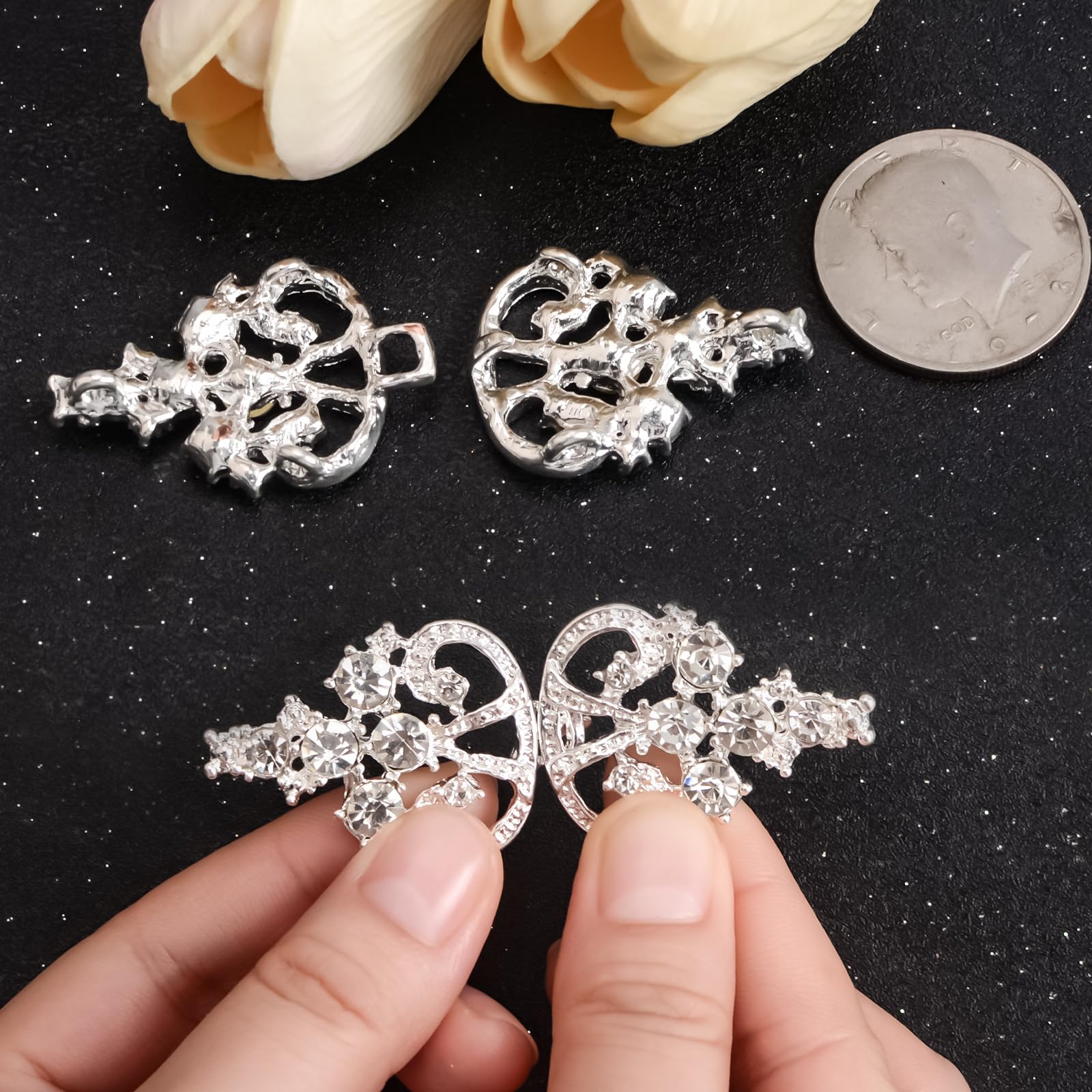 Contenu de l'emballage : 3 paires de fermoirs de cape en forme de pétale, taille : 6 x 2,5 cm, couleur : argenté Installation facile : les clips de cape sont faciles à installer, adaptés pour les pulls, gilets, chemises habillées ou autres vêtements, sacs et autres décorations, et ont des coutures Velcro pour une utilisation facile, montrant l'élégance. Nombreuses utilisations : les fermoirs peuvent être utilisés à la fois pour les occasions formelles et décontractées, telles que les fêtes, les mariages, les rendez-vous, le travail, etc. Cape Châle Feerique - Vêtements WANDIC – Lot De 5 Paires De Feroirs à Coudre Pour Cardigan, Otif Satin Chale Mariage Echarpes Et Foulards Pour Robe De Soirée Élégant... Ils peuvent également être assortis à vos différents vêtements, tels que des pulls, des robes, des colliers, des manteaux et ainsi de suite, vous rendant plus charmante.