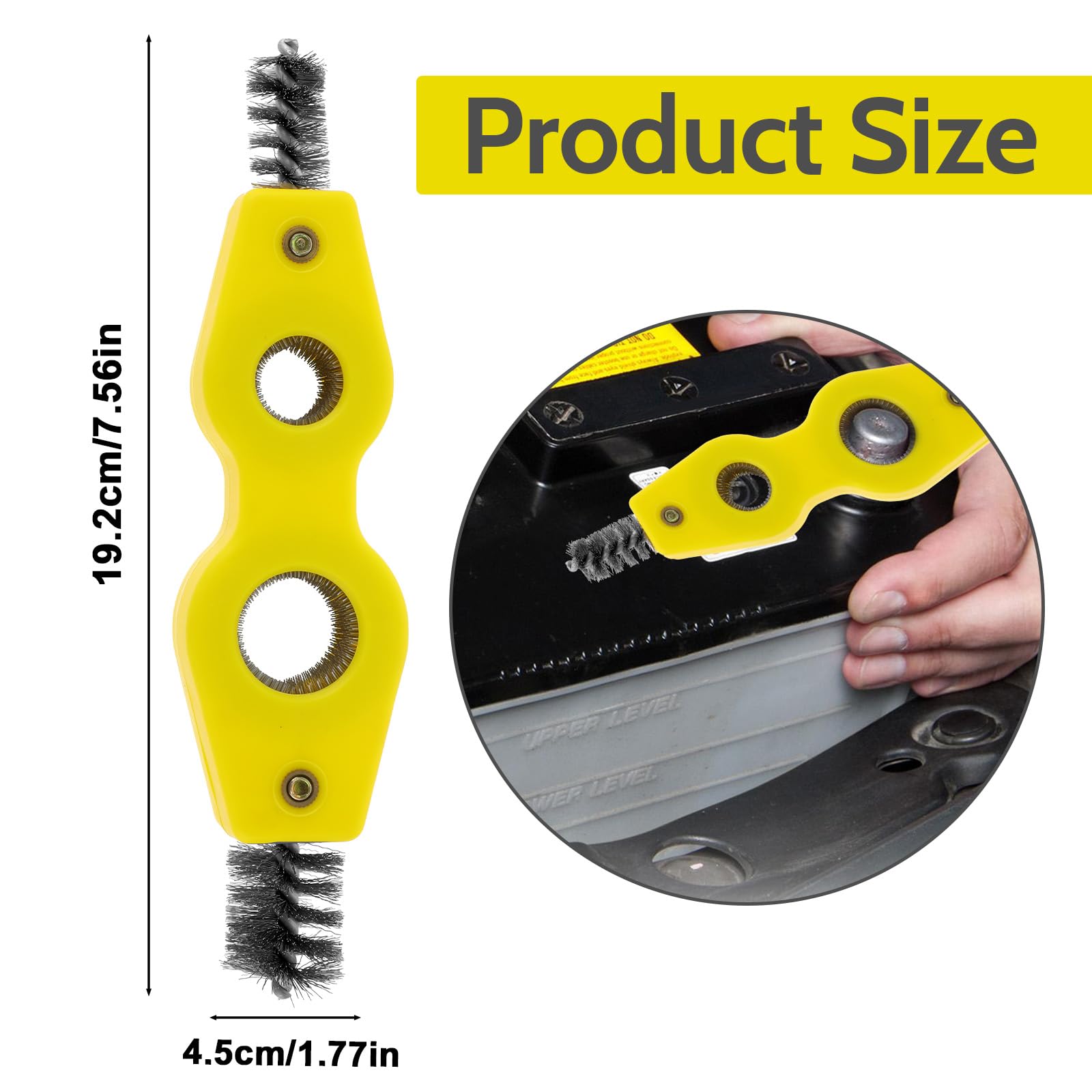 La brosse de nettoyage de batterie de voiture ne mesure que 20 cm de long, et peut être retirée à tout moment lorsque cela est nécessaire. C'est donc un outil très pratique. Modèle applicable : universel. [Matériaux de haute qualité] : la brosse pour bornes de batterie de voiture est fabriquée en plastique ABS de haute qualité et en acier inoxydable, le fil d'acier est riche et dense, non seulement une répartition uniforme, mais également une résistance aux rayures et à l'usure. FOREHILL Lot de 4 brosses pour bornes de batterie pour bornes Ce design vous permet d'utiliser plus de confort, moins d'effort. Cosse pour batterie de bateau et camping-car avec bornier à écrou papillon pour un vissage, dévissage plus rapide de vos accessoires. Description : Caractéristiques : Matériaux : acier inoxydable, fil d'acier, plastique., Taille : 20 cm., Poids : 0,15 kg. - La brosse de nettoyage pour bornes de batterie peut être utilisée pour le nettoyage de la batterie de la plupart des véhicules, tels que les voitures, les bateaux, etc. [Fonction de nettoyage] : le nettoyeur de poteaux de batterie peut être utilisé pour enlever la rouille sur la surface des bornes de la batterie et nettoyer et polir la surface des tuyaux métalliques. Brosse de nettoyage de bornes de batterie, nettoyeur de bornes de... [Facile à transporter] : notre brosse à tête de câble de voiture est conçue dans une mode élégante qui est non seulement facile à utiliser, mais également facile à ranger. BAHCO - Brosse pour nettoyage de bornes de batteries - Pro Matériel... Coque en plastique rigide et durable, bonne résistance aux chocs, ne se déforme pas facilement. La pointe de la brosse pénètre profondément dans la borne de la batterie pour nettoyer la rouille et les taches. - Les outils de nettoyage sont ergonomiques. Nettoyeur De Bornes De Batterie De Voiture 4 Voies En Acier Couleur : rouge/jaune/bleu/noir.