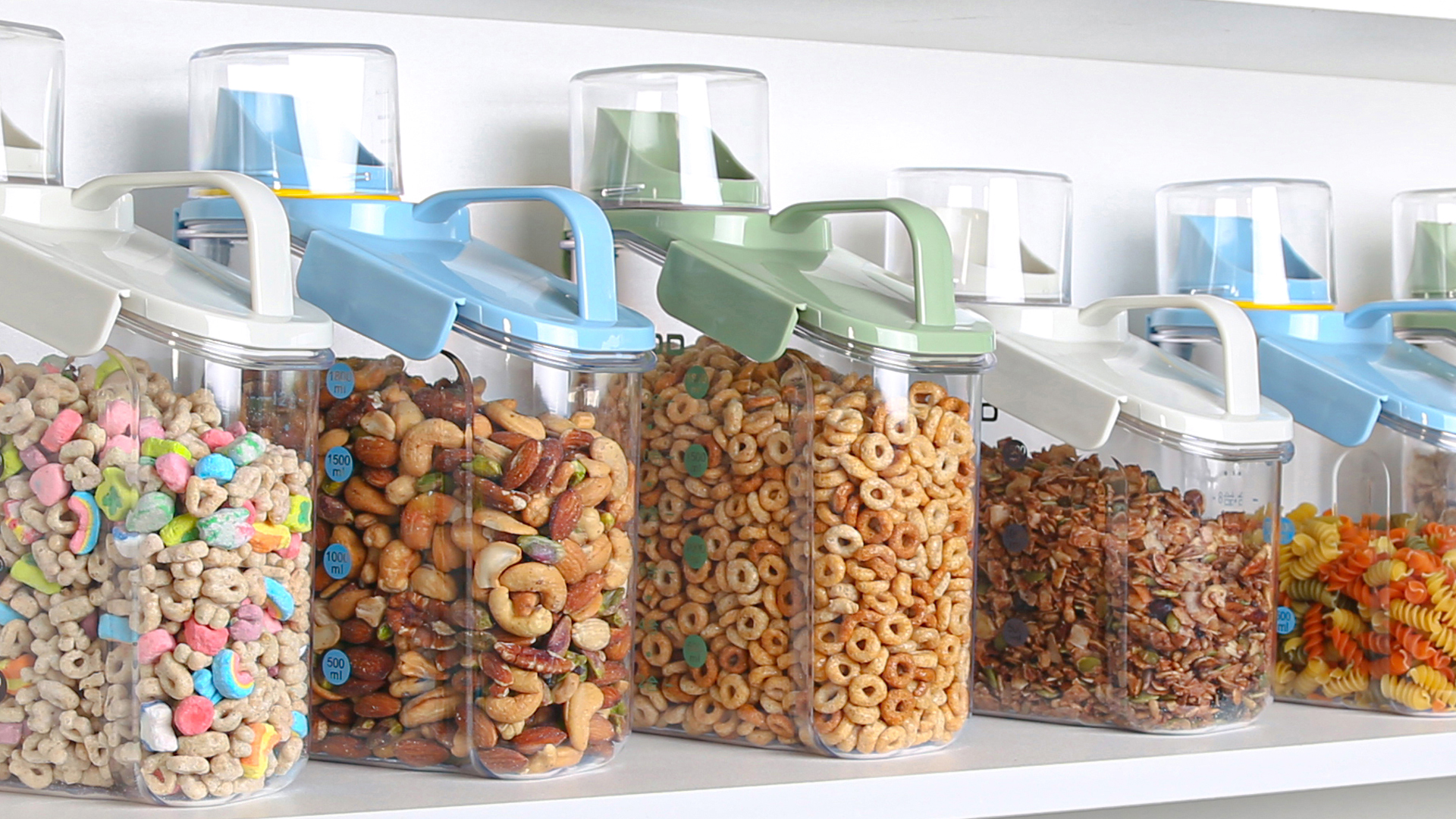 Utilisez-les comme boîtes à café, thé ou sucre, ou pour stocker des pâtes, des céréales, des collations, des fournitures de pâtisserie, etc. Lot de 4 bocaux à biscuits carrés en verre avec couvercles hermétiques marqueur et étiquettes, ensemble de boîtes pour comptoir de cuisine ou salle de bain – Conteneurs de stockage alimentaire Contenances : 350ml, 540ml, 800ml et 1200ml. Voir le contenu en un coup d'œil à travers le verre transparent — parfait pour l'organisation du garde-manger, le rangement du comptoir et une utilisation quotidienne. Même lorsqu'ils sont secoués ou retournés, ils ne fuient pas, parfaits pour préserver la fraîcheur du thé, du café, des épices, et plus encore. Leur design élégant et minimaliste en fait un choix polyvalent pour toute maison moderne, vous aidant à créer un espace de cuisine sans encombrement et visuellement attrayant. 【Joint hermétique de qualité supérieure – Protection étanche à 360° 】 – Conçus avec un joint sous vide conçu avec précision, ces bocaux empêchent l'air et l'humidité de pénétrer. 【4 tailles pratiques – Empilable, élégant et peu encombrant】 – Comprend quatre tailles (17/24/30/1301,2 ml) pour répondre à tous vos besoins de stockage, du sucre et du café aux pâtes et céréales. Que vous organisiez des produits secs ou que vous mettiez en valeur les essentiels du quotidien, ces boîtes hermétiques rendent le rangement simple, pratique et élégant. Passe au micro-ondes (verre uniquement), sans BPA, résistant aux odeurs et conçu pour durer. Boite De Rangement Pour Cuisine étiquettes Marquage Alimentaire Lot De 4 Boîtes Hermétiques Withosent 4L - Rangement Cuisine Céréales Farine - Couvercle Verseur Pratique Récipients Alimentaires Hermétiques Boite De Rangement Alimentaire Boîtes de rangement pour la cuisine avec couvercles - Les bocaux SmartStore pour aliments secs sont dotés de couvercles pratiques et de bords doux au toucher pour une fermeture hermétique, préservant ainsi la fraîcheur des aliments plus longtemps. Lot de 4 boîtes avec couvercles (capacité de 1,65 litre, 18 x 12,5 x 10 cm). • Boîtes de rangement modulaires empilables - Ces boîtes... Avec un fond en silicone antidérapant et un design minimaliste, ils sont du plus bel effet dans n'importe quelle
