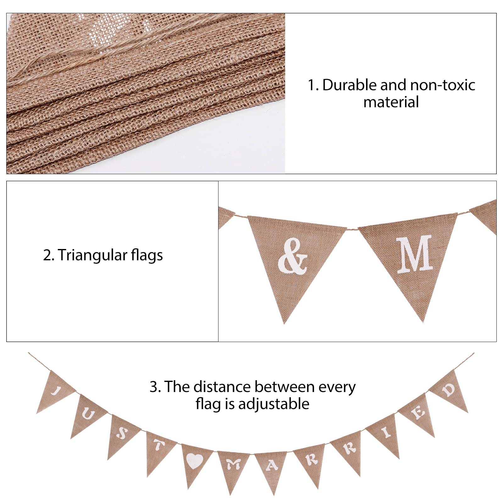 Lot de 3 guirlandes de mariage incluses : le lot de décorations de mariage comprend 1 pièce. Bannière de mariage en toile de jute., 1., Les bannières sont fabriquées en toile de jute naturelle, résistante à l'usure et respectueuse de l'environnement. Lot de 3 guirlandes de mariage incluses : le lot de dcorations de mariage comprend 1 pice, Guirlande Just Married, 1 pice, 1 guirlande de lettres Mr Mrs, Guirlande de curs Il est adapt pour les crmonies de mariage et les fianailles, pour crer une atmosphre romantique, Dimensions adaptes : la guirlande de bannire Just Married a 12 drapeaux... Réutilisable et durable., 2., Les drapeaux sont enfilés sur du fil de jute naturel et nous avons assez de longueur aux deux extrémités pour les accrocher. Matériau : toile de jute., Style : vintage. Dimensions adaptées : la guirlande de bannière Just Married a 12 drapeaux, chaque taille est d'environ 12 x 15 cm - Longueur de la corde : environ 3 mètres. Spécifications : Nom du produit : guirlande de mariage. Mariage Decoration Kit Décoration Mariage Just Married, Ballons En Latex Blanc, Avec Signes Mr Et Mrs, Bannière Banderole Personnalisée 1 guirlande de lettres Mr & Mrs. Guirlande de cœurs Il est adapté pour les cérémonies de mariage et les fiançailles, pour créer une atmosphère romantique 1 bannière MR&MRS. Guirlande Mariage Guirlande Intérieur / Extérieur De Mariage – Fanion En Jute Avec Cœur Blanc – Déco Mariage Vintage - Mon Mariage Parfait Guirlande à Fanions Mariage Il inclut : une bannière 'Just Married', une guirlande cœur en jute, un logo Mr & Mrs, une décoration de chaise, une décoration de table, 20 ballons blancs et... Guirlande Just Married, 1 pièce. Contenu : 1 bannière Just MarriedBanner.