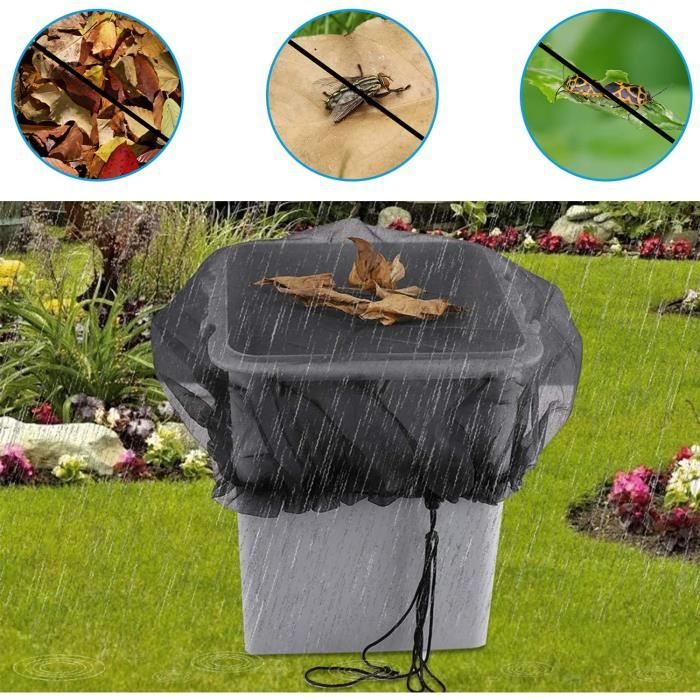 Filets Citerne 6 Filets Pour Récupérateur Eau Pluie 95cm Description du produit : Le design de la corde élastique du filet de citerne est plus ferme et ne peut pas être facilement soufflé par le vent. Caractéristiques : Matériau : fibre de polyester., Diamètre : 95 cm., Couleur : noir. 【Taille adaptée】 : vous obtiendrez 2 filets anti-pluie. Filet Anti Moustique Filet Pour Citerne De Pluie,Réglable Filet De Protection Pour Tonneau Outils Pluie 【Gagnez du temps de nettoyage】 : la maille du baril de pluie est facile à installer, il suffit de couvrir la maille fine sur le baril et de la fixer. 【Conception de corde de tirage】: Notre housse de baril de pluie est conçue avec un cordon élastique pour une utilisation facile. Le couvercle du seau peut empêcher les moustiques, les grenouilles et d'autres animaux d'entrer dans l'eau et les empêcher de pondre des œufs dans l'eau. Le filet de baril de pluie à mailles fines protège de manière fiable votre eau des feuilles, du feuillage et des insectes, attendez-vous à une eau propre. 1 manuel d'utilisation (français non garanti). Filets de Pluie réglable,Filet de Pluie avec Cordon de Serrage,Protection Contre Les Moustiques et Les Feuilles,95cm. 2 Pcs Filet pour Citerne De Pluie,Filet... La housse de citerne de pluie est adaptée à toutes les citernes de pluie d'un diamètre ≤ 95 cm, qu'elles soient rondes ou carrées.