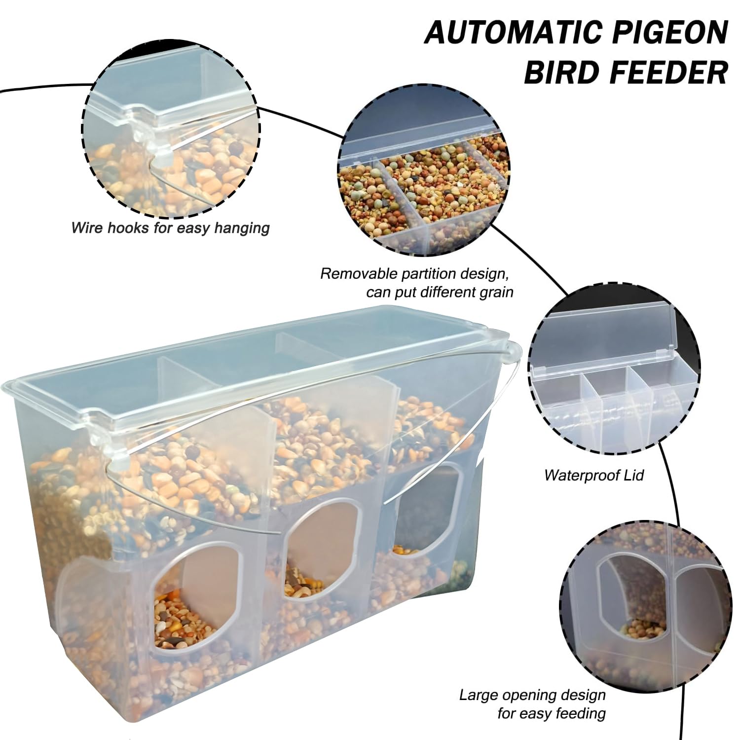 Il dispose de 3 trous, ce qui peut permettre à 3 pigeons de manger en même temps, ou peut contenir différents dans chaque trou pour augmenter les besoins nutritionnels des pigeons. Vous pouvez utiliser ces abreuvoirs pour approvisionner vos pigeons, colombes et oiseaux de volière en eau. Nos éleveurs recommandent aussi l'abreuvoir automatique équipé d'un bouton marche/arrêt Une bonne qualité à prix abordable. Facile à nettoyer : la mangeoire à eau suspendue à l'extérieur de la cage à oiseaux facilite l'ajout de nourriture sans effrayer les oiseaux. Matériau de qualité : mangeoire à oiseaux de qualité, qui ne vieillit pas facilement, ne se casse pas facilement, et est durable. Design unique : Mangeoire à pigeons avec un couvercle, elle peut empêcher les fuites d'aliments, ce qui permet d'économiser les aliments dans une large mesure, et elle est également imperméable, même les jours de pluie, elle ne sera pas mouillée. Dimensions : 25 x 14 x 9 cm Il est non seulement pratique pour nettoyer les aliments résiduels, mais aussi pour ajouter de nouveaux aliments. Il peut également empêcher les déjections d'oiseaux pigeons de tomber, assurant l'assainissement de la nourriture. Design unique : mangeoire à pigeons avec couvercle, elle peut empêcher les aliments de fuir, ce qui permet d'économiser les aliments dans une large mesure, et elle est également imperméable, même les jours de pluie, elle ne sera pas mouillée. Yardwe Lot De 2 Mangeoires D'eau Automatiques Pour Pigeons DISTRIBUTEUR D'EAU POUR pigeons, mangeoire automatique pour oiseaux... Yardwe Lot de 4 mangeoires d'eau automatiques pour