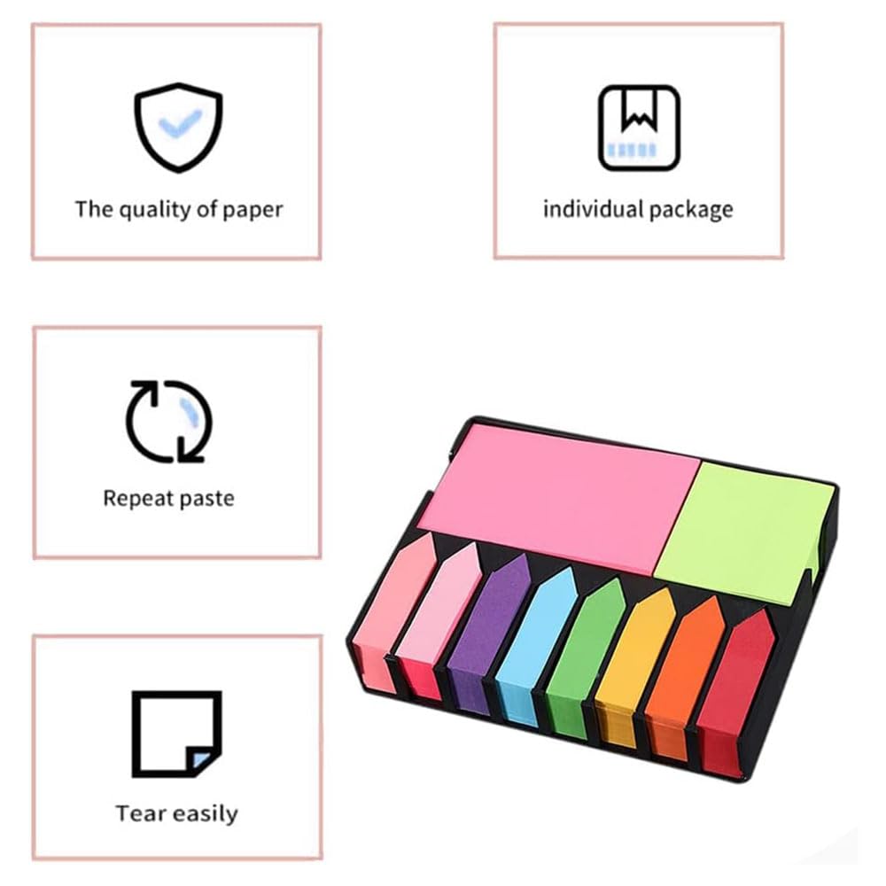 Mega Box Lot de 2000 notes autocollantes en 11 couleurs, 3 formats, dans un étui en cuir synthétique Contenu : 8 blocs de 200 marqueurs de page/bandes adhésives (45 x 12 mm) dans les couleurs bleu, orange, jaune, vert, bleu clair, rouge, violet et rose (Figure 1) Deux blocs de 1 chacun 00 notes adhésives. 1200 Pièces arque Page Adhesif,Signets adhésifs,Onglets D'Index... Achetez Étiquettes autocollantes colorées, 100 feuilles, étiquette autocollante transparente, journal de Notes autocollantes, pour planificateur et fournitures scolaires du marchand Sesame's Store en ligne ❤️ Obtenez les meilleurs nouveaux produits de BestDealPlus.com tous les jours. Dans une boîte en forme de livre avec aspect cuir, avec pochette transparente (12 x 9 cm) pour calendrier, photo, etc. Contenu : 8 blocs colorés de 200 marqueurs de page/bandes adhésives (45 x 12 mm) assortis dans les couleurs bleu, orange, jaune, vert, bleu clair, rouge, violet et rose (Figure 1) Notes adhésives au format 46 x 41 mm dans les couleurs vert clair et jaune, 2 blocs de 100 feuilles par bloc-notes / notes autocollantes (46 x 75 mm) dans les couleurs rose et jaune clair. Marquez, structurez et organisez ! Le calendrier (décoration) n'est pas inclus. Exemples d'utilisation : marquer les pages de livres, magazines, etc. sans endommager le support, mémoriser des tâches, écrire des idées, laisser des messages à des collègues, des amis ou des membres de la famille Post It Livre Notes Autocollantes Aux Couleurs Vives Pour La Maison, Le Bureau, Jaune, 100 Feuilles/paquet - Foska Post It Couleur HQCME Lot de 9 notes adhésives lignées, 10,2 x 15,2 cm, 9 couleurs pastel, grands blocs adhésifs colorés super collants, notes adhésives avec lignes pour la... Lot de 2 000 blocs de notes adhésives multicolores de