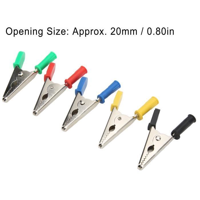 Idéal pour les chargeurs de batterie (panneau solaire, clôture électrique, etc., ). ou l'utilisation de batteries de voiture ou de loisirs (camping, bateau, clôture électrique, etc., ). Pinces crocodiles électriques : facile et rapide à connecter. 10pcs Ensemble de Fils de Test Electriques à Pinces Crocodiles,0.5 mm² Pince crocodile qui tient fermement Largement utilisé pour divers projets électriques, testeur de tension. - Selon la luminosité et les paramètres d'éclairage des écrans, la couleur réelle de l'article peut être légèrement différente de celle de la photo. Pince crocodile qui tient fermement. Idéal pour les chargeurs de batterie (panneau solaire, clôture électrique, etc. ), voiture, camping, bateau, clôture... Pince crocodile qui tient fermement. Merci de prendre le produit réel comme référence. Contenu : 2 pinces crocodiles (1 rouge + 1 noire). Longueur des pinces de batterie : environ 90 mm. Les pinces crocodiles batterie sont des accessoires indispensables pour tout propriétaire de véhicule, que ce soit une voiture, une moto ou un bateau. Ces petites pièces, souvent négligées, jouent pourtant un rôle crucial dans le bon fonctionnement de la batterie et du système électrique du véhicule. Les pinces crocodiles permettent de relier facilement la batterie à d'autres... Pince Crocodile Electrique BE-TOOL Lot De 2 Pinces Crocodiles Robustes Isolées Pour Circuit De Test électrique Rouge Noir Cable Batterie Voiture Quantité : 2 pièces (1 rouge + 1 noir).