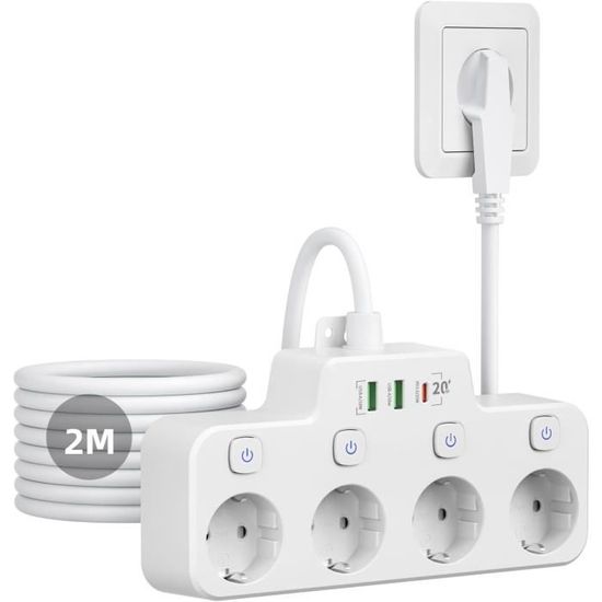 Multiprise Electrique 3 Prises Usb C 20W, Multiprise De Bureau Avec Interrupteur Et 3 Ports Usb Le design de l'interrupteur à pédale permet à l'utilisateur d'activer les prises électriques sans avoir à se pencher ni à utiliser les mains Convient à diverses scènes Design polyvalent et élégant Notre multiprise moderne, équipée d’une pédale de commande élégante, allie élégance et fonctionnalité. La protection des enfants intégrée assure un lieu de travail sûr en utilisant des dispositifs de sécurité pour enfants qui empêchent tout contact accidentel et protègent les enfants des dangers électriques Prise Multiprise Avec Interrupteur Multiprise Avec Interrupteur, Multiprise Murale Avec 3 Usb A Et 1 Type Prise Connectée Plus besoin d'attendre longtemps pour recharger vos appareils Vous pouvez également utiliser le câble d'alimentation de 2 mètre pour le placer facilement votre bureau,cuisine, salon Multiprise:Elle est dotée d'une construction robuste. Multiprise USB:Elle contient un chargeur rapide 17W A+C dédié, spécialement conçu pour recharger rapidement vos smartphones, tablettes et autres appareils USB-C. Multiprise avec Interrupteur Pour Pied:La multiprise semble de qualité et dispose d'une fonctionnalité unique, l'interrupteur pour pied avec un long câble qui permet de le positionner dans un endroit accessible même si la multiprise est hors d'atteinte. Cette prise électrique avec fonction USB A C combine les fonctions des prises de courant traditionnelles avec les besoins de charge des appareils mobiles modernes, offrant aux utilisateurs une vie pratique et efficace. Multiprise avec Interrupteur Tour, 12 en 1 Prise Multiple... Cette prise électrique avec fonction USB A+C combine les fonctions des prises de courant traditionnelles avec les besoins de charge des appareils mobiles modernes, offrant aux utilisateurs une vie pratique et efficace