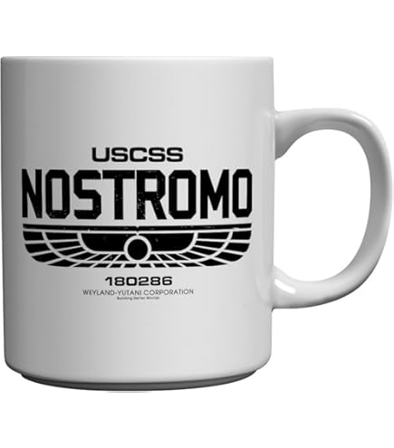 USCSS Nostromo Aliens Inspired Weyland Corp Premium Blanc Tasse De Café Avec Jante Noire Et Poignée Mug