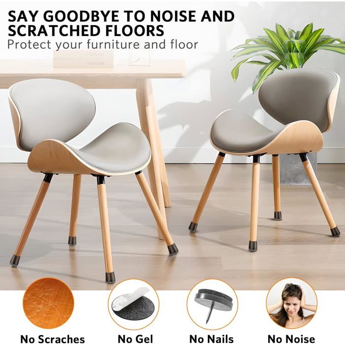 Les housses de pieds de chaise sont fabriquées en matériau thermo-élastomère de qualité supérieure, durable et extensible. 32 Pièces Protection Pied De Chaise, Patins Pour Chaises En Silicone Nous avons épaissi le silicone, et le coussinet inférieur en feutre et les protège-jambes en silicone sont intégrés par une machine à haute pression et ne tomberont pas. Patin Chaise 24 Pièces De Protège-Sol En Plastique Renforcé Pour Pieds De Chaise Carrés - Patins Antidérapants * Adhésif, Conçus Spécifiquement Pour Parquets Et * Capsules -Rayures Ajustables Aux Jambes Des Housse Chaise Et dans le processus d'emballage, nous avons ajouté des particules antidérapantes à l'intérieur pour s'assurer que votre table et vos chaises ne tomberont pas. Convient à la plupart des formes de pieds de chaise ronds et carrés. Vous êtes toujours confronté à des sols rayés ? Matériau de traitement thermique de haute qualité en caoutchouc, avec des avantages de résistance à l'oxydation, à l'usure, à la corrosion et autres. Chaises et tables de salle à manger, Chaises de terrasse, Chaises de cuisine L'utilisation quotidienne et le mouvement des meubles peuvent endommager vos sols durs. ☛【Facile à installer】- Les embouts de pieds de chaise en caoutchouc sont faciles à installer pour tous ceux qui ont une certaine force de préhension. ☛【Ne tombe pas facilement】Les protections carrées en silicone pour pieds de chaise sont améliorées et recouvertes d'un fond épais. Mettez les protections de sol sur les pieds de chaise extérieurs en métal pour les empêcher de rouiller. ☛【Protégez tous les sols durs des rayures et réduisez le bruit】Les chaussettes de chaise pour sols en bois dur sont améliorées avec un coussinet en feutre épais. Aucun outil, il suffit de mettre les coussins de chaise pour planchers de bois dur sur les pieds de chaise. Protège Pied de Chaise - DIOCHE - Transparent - Lot de 20 - Feutre... ☛【Fond en feutre épais amélioré】 : le fond épais de 5 mm et le matériau solide rendent l'usure beaucoup plus durable, durable beaucoup plus longtemps. Les housses de pieds de chaise carrées ont une grande élasticité, faciles à tirer. Réduit le bruit, donne à votre famille un environnement calme Les pieds de meubles sont respectueux de l'environnement et lavables.