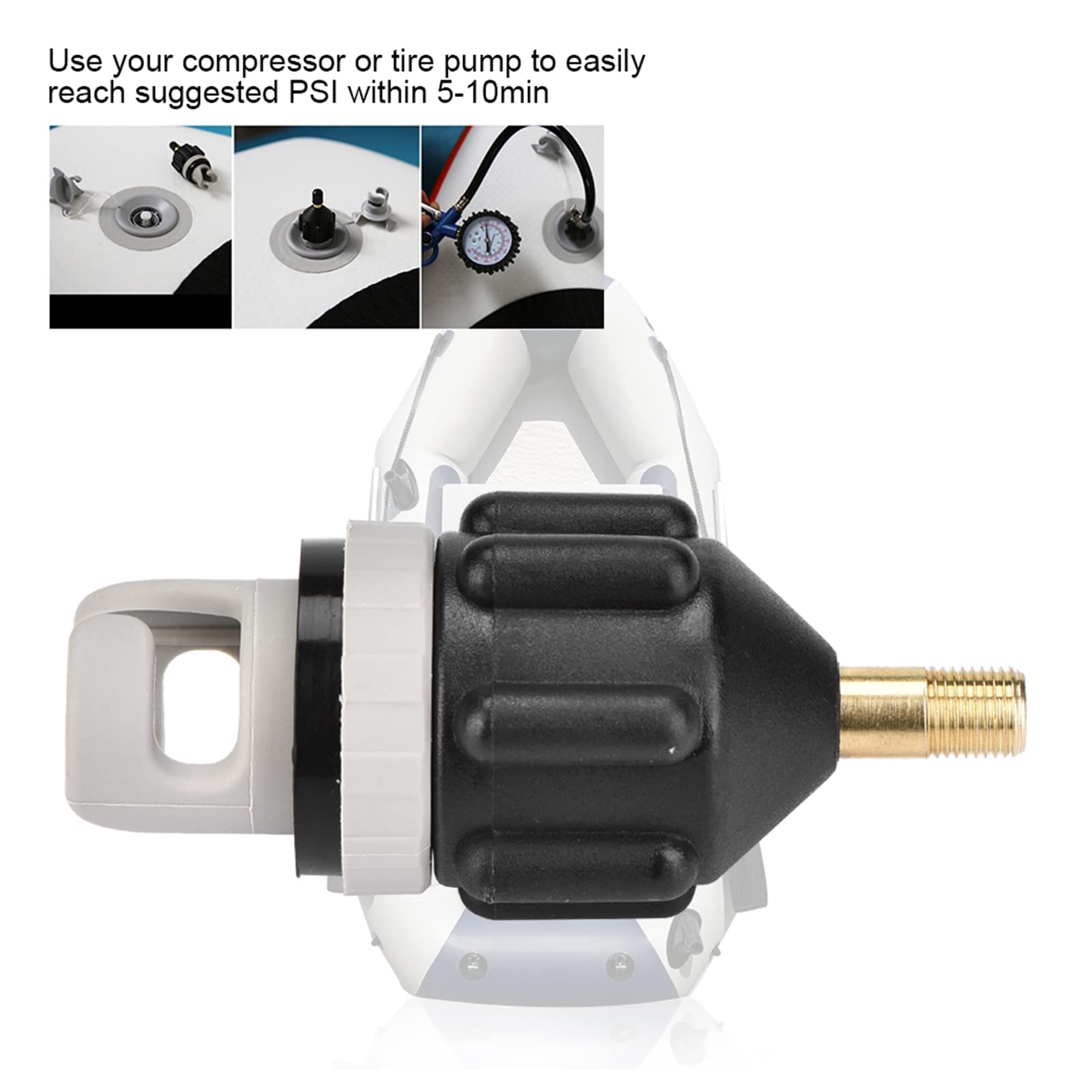 Description : L'adaptateur de pompe électrique SUP utilise un raccord de valve Schrader standard pour coupler avec une pompe à air ou une pompe à pneu de vélo. Retirez le bouchon sur le raccord et connectez une pompe électrique standard. Contenu : 1 adaptateur de pompe à air. Remplacement du bouchon de valve de gaz d'air: léger, portable, facile à transporter et à utiliser, il peut vous apporter une grande commodité. Vanne d'air de bateau BR-Vie Convertisseur Gonflable de Pompe dAdaptateur dair Adaptateur, 4... Boards Together BESPORTBLE Adaptateur De Pompe Gonflable En Caoutchouc Pour Pump Adapter In Store Caractéristiques : - Matériau : caoutchouc et cuivre. Adaptateur de Kayak, Adaptateur de Pompe Sup, Adaptateur Pompe Kayak Embout de Gonflage, Sup Convient pour kayak gonflable, bateau, caone, planche de paddle, etc. Parce que les compresseurs ou les pompes de pneus prennent du temps à gonfler, il est recommandé de gonfler la planche à la main jusqu'à ce qu'il devienne difficile de pomper, puis d'utiliser l'adaptateur pour éliminer la pression. L'adaptateur de pompe électrique SUP utilise un raccord de valve Schrader standard pour coupler avec un compresseur d'air ou une pompe à pneu de vélo.
