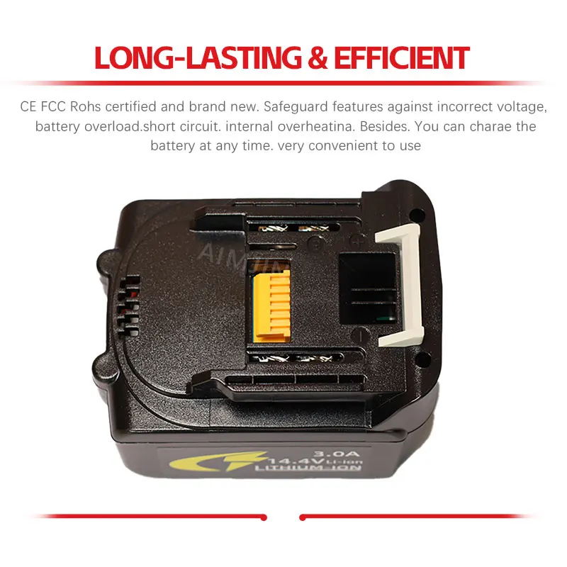 Spécifications de la batterie :Capacité de la batterie : 6., 0Ah/6000mAhTension : 14., 4V Batterie de rechange pour :BL1430 BL1415 BL1440 BL1415N196875-4 194558-0 195444-8 196388-5 Compatible avec :(Veuillez chercher avec Ctrl + F)TD130DRFXR TD130DRFXW TD131D TD131DRFX TD131DRFXR TD131DRFXW TD132D TD132DRFX TD132DRFXB TD132DRFXW TW152DRFXBDA340 BDA340Z BDA341 BDA341RFE BDA341Z BDF343 BDF343RHEX BDF440 BDF440SFE BDF440Z BDF441RFEBDF441SFE BDF441Z BDF442 BDF442RFE BFR440 BFR440RFE BFR440SFE BFR540 BFR540RFE BFR540Z BGA450RFEBGA450Z BHP343Z BHP440 BHP440SFE BHP441 BHP441RFE BHP441SFE BHP441Z BHP442RFE BHR162 BHR162SFEBHR162Z BJR141Z BJV140 BJV140RF BJV140RFE BJV140Z BML145 BMR100 BPT350RFE BPT350Z BSS500RFEBTD130F BTD130FRFE BTD130FSFE BTD130FSFER BTD130FSFEW BTD130FW BTD130FZ BTD130SFE BTL060RFE BTL060Z BTP130BTP130SFE BTP130Z BTS130 BTS130RFE BTS130SFE BTS130Z BTW250 BTW250Z BVR340 BVR440 Remarque :Conservez la batterie dans un endroit frais et sec. Si vous avez des problèmes avec le produit, veuillez nous contacter, nous résoudrons votre problème dans les 12 heures. Energup 14.4V 5000mAh Batterie de Rechange pour Makita 14.4V Batterie Batteries pour perceuses akita Certifié FCC,CE et RoHS. Batterie Makita 18v 6ah Batterie 14.4V 6000mAh BL1430 Remplacement Batterie Compatible Avec Bl1430b Bl1440 Bl1415n 194558 0 196388 5 194065 3 Bl1430b 14 4v 6 0ah Batterie Pour Makita 14 4v Batterie Avec Indicateur Led Chargeur Makita 18v Ne mettez pas la batterie dans l'eau ou dans le feu. Batterie de remplacement pour Makita 14., 4V Li-Ion batterie L1430 BL1415 BL1440 BL1415N 196875-4 194558-0 195444-8 196388-5 194065-3 etc. Le paquet contient :1*Batterie de rechange pour Makita batterie 14., 4V1*Manuel d'utilisation, Tension : 14., 4V | Capacité : 6000mAh/6., 0Ah | Type de batterie : Li-Ion Vhbw Batterie remplacement pour Makita BL1415N, BL1420, 194065-3...