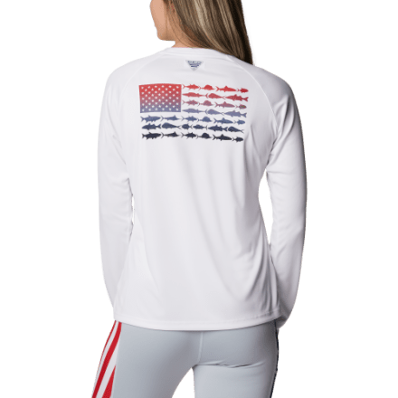 Pour la poitrine, mesurez la partie la plus large de la poitrine, sous les aisselles et sur les omoplates et maintenez le mètre ruban serré et plat. Columbia Women’s PFG Tidal Tee II Long Sleeve Plus - White/Cirrus Grey... Graphique imprimé par sublimation. Pour vous assurer que la taille est correcte, utilisez notre tableau des tailles et les instructions de mesure suivantes : commencez par le milieu du cou et mesurez sur les épaules et les manches. Columbia Tidal Tee PFG Fish Flag Long Sleeve Chemise De Columbia Chemise à Manche Longues Femme - Silver Ridge EUR 3.0 - Safari Ce t-shirt à manches longues est un must pour tous les jours sur l'océan, le lac ou la rivière. Columbia propose ce t-shirt en différentes couleurs et tailles., Coupe classique.