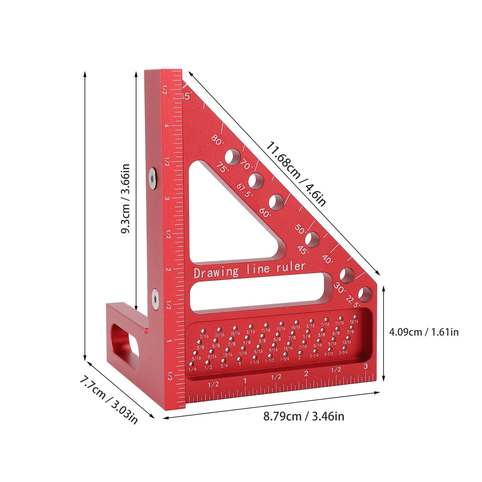 Les trous de traçage de 0,6 cm sont parfaits pour dessiner des lignes droites et de précision. Grande taille : le grand carré de charpentier GOINGMAKE de 15,2 x 19,1 cm vous offre un grand carré de travail du bois pour les grands projets et parfait pour le marquage du bois d'œuvre. Facile à utiliser et s'adapte à la plupart des crayons de travail du bois. Duokon équerre de marquage de mesure du travail du bois Règle de mesure GOINGMAKE Grand carré de travail du bois de 15,2 x 19,1 cm offrant une grande taille pour le marquage du bois de grande taille. Mesure rapide de l'angle : la grande règle de mesure multi-angle 3D GOINGMAKE peut facilement dessiner de 0 à 90 degrés rapidement et avec précision. YOSOO Carré de charpentier Équerre de charpentier en alliage d... 【Scribage de trous de précision de 0,6 cm】Le carré de vitesse GOINGMAKE comprend des trous de précision par incréments de 0,6 cm pour le dessin au trait. Notre grand carré comprend des trous de position de broche à angle rapide de 22,5°, 30°, 45°, 60°, 67,5° et 75° et une broche d'angle fixe pour un dessin d'angle facile. La balance laser claire et précise de 0,6 cm rend le travail du bois précis et sans deviner. C'est votre équerre de vitesse, votre équerre de charpentier et votre équerre de charpentier indispensables. Règle d'angle multifonctionnelle en alliage d'alum... – Grandado Regle Multi Angles Règle De Mesure D'angle Multiple 3D Règle De Traçage De Trou Carré De Charpentier Règle Carrée De Travail Du Bois De 22,5 ° à 90 ° Règle D'angle Droit De Rapporteur Angle Cut Échelle laser claire et précise : le grand carré de travail du bois polyvalent GOINGMAKE est fabriqué en alliage d'aluminium pour une utilisation à long terme.