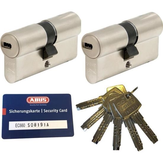 ABUS EC550 Profil Cylindre double longueur 30/55 mm avec 6 clés - Haute qualité protection de perceuse - Profil cylindre double - Avec 6 clés (3 de la même avec code en relief et 3 sans code en relief) - Avec numéro de code (clé d'empreinte) sans carte de sécurité - Fonction urgence/danger (verrouille même lorsque la clé est insérée). Avec numéro de C digo (clé d'empreinte digitale) sans carte de sécurité Fonction en cas d'urgence/danger (se verrouille lorsque la clé est insérée) Product Description Abus EC550 Profile Double Cylinder Length (a / B) 30/30mm (C = 60mm) with 8 Key - High quality anti-drill - Profile Double cylinder - With 8 Key (three with code stamping and embossing five without code) - With code number (key embossing) without security card - Emergency &. Hazard function (can be locked even if a key is... ABUS EC550 Profil Cylindre double longueur 30/55 mm avec 6 clés - Haute qualité protection de perceuse - Profil cylindre double - Avec 6 clés (3 de la même avec code en relief et 3 sans code en relief) - Avec numéro de code (clé d'empreinte) sans carte de sécurité - Fonction urgence/danger (verrouille même lorsque la clé est insérée Serrure Porte Entree Barillet Porte D'entrée ABUS EC550 Double Cylindre Profilé Longueur 30/30mm Avec La Serrure Connectée Serrure A Cylindre Cylindre à double entrée nickelé Vachette CY110 55X35 90mm