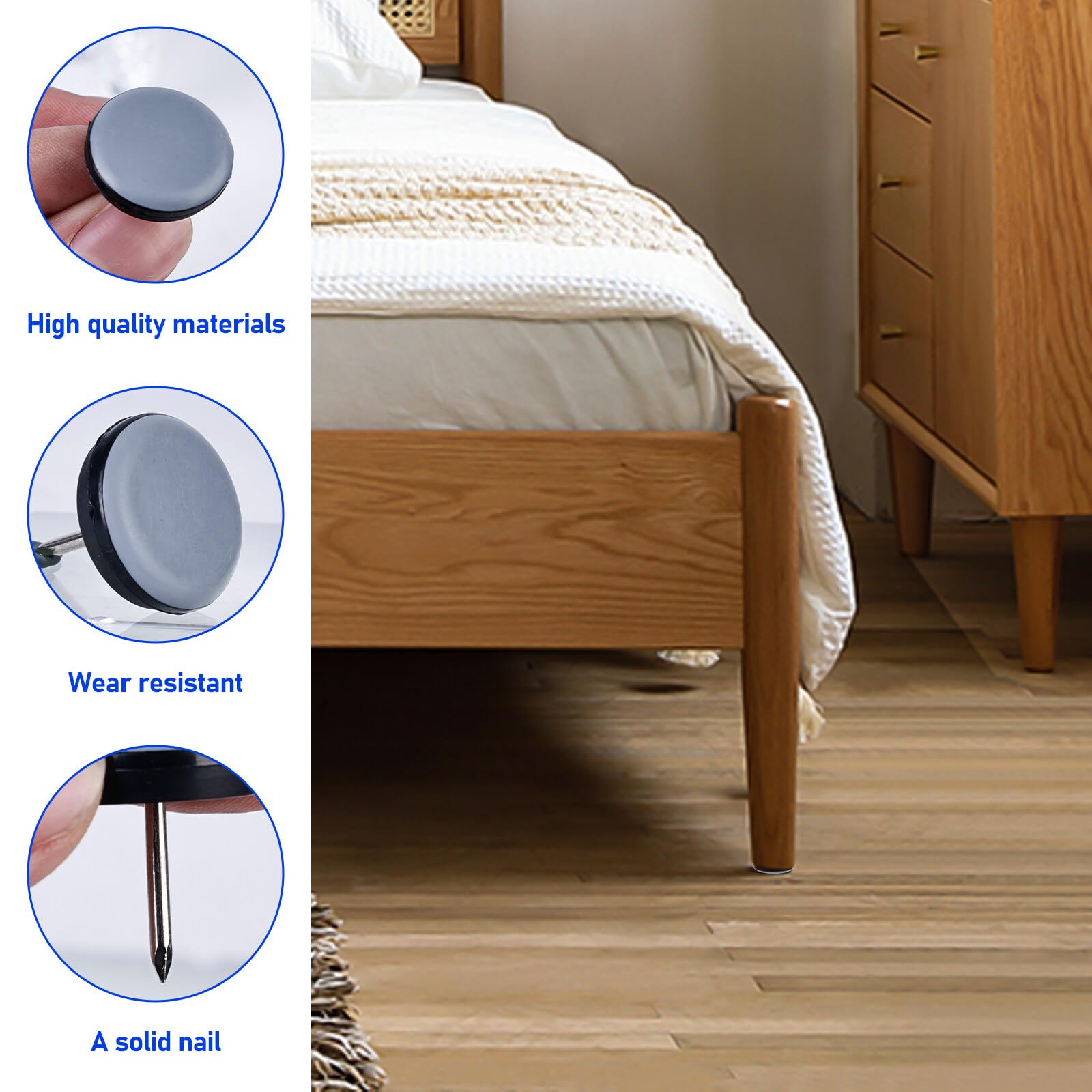 Ils restent ainsi stables et sécurisés. Dites adieu aux rayures et aux dommages disgracieux sur vos sols. Grâce à la technologie avancée des patins de chaise en Téflon avec clou, vos meubles glissent sans effort sur les tapis, carrelages ou parquets. Avec les patins de meubles en Téflon, votre maison reste propre et vos sols en parfait état. Idéal pour un usage domestique quotidien. La manipulation facile permet une installation rapide sans outil, afin que vous puissiez profiter immédiatement des avantages. Le patin de meuble a un diamètre de 22 mm, une épaisseur de 7,3 mm et un diamètre intérieur de 10 mm. La taille de la vis est : M4*10 mm Tampon Chaise DXLing 32... Ces patins de meubles sont spécialement conçus pour faciliter le déplacement des meubles tout en préservant vos sols sensibles. La surface robuste en Téflon résiste à l'usure même en cas d'utilisation intensive et garantit que les déplacements de vos meubles restent doux et silencieux même après de nombreuses utilisations. [Protection pour vos sols]–Avec les patins de meuble en Teflon avec clou, protégez vos sols sensibles des rayures disgracieuses et de l'usure. [Durabilité et robustesse]–Les patins de meuble ronds en Teflon se distinguent par leur haute résistance et leur longue durée de vie. Il suffit d'enfoncer le clou dans les pieds des meubles pour pouvoir déplacer vos meubles facilement. Tampon Pour Chaise 50 Pièces Patin Chaise Teflon à Clouer 19mm Ronde Patins De Meubles En Teflon Avec Clou Teflon Patins De Chaise Feutre A Clouer Pour Chaise Canape Bureau Table 87249150 Patin De Chaise Investissez dans la meilleure protection pour vos meubles et sols – facile à installer et extrêmement efficace. [Application facile]–Les patins de chaise en Teflon avec clou s'installent sans effort. Que ce soit pour des chaises, des tables, des canapés ou des lits – ces patins de chaise en PTFE Téflon avec clou conviennent à presque tous les types de meubles qui sont régulièrement déplacés. NewZC 48PCS Clous Patins de Meuble Patin Chaise a Clouer Meubles Feutre Avec une taille pratique de Ø 22 mm et une longueur de clou de 16,5 mm, ils se fixent facilement et solidement à tous les pieds de meubles en bois.