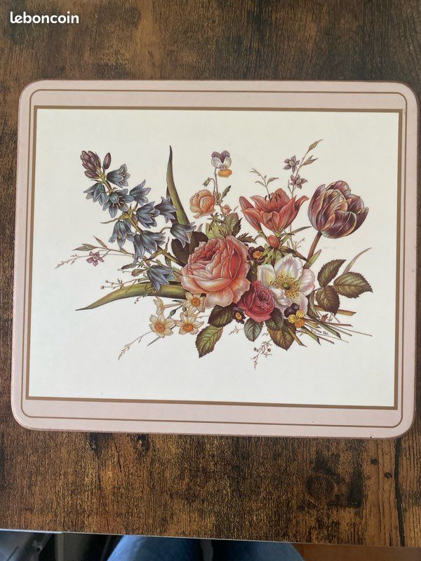Lot de 4 grands sets de table avec dos en liège. Pimpernel Utilise un carton épais de 5 mm pour faire ses sets de table et sous-verres. Avec une impression artistique exclusive. Pour éviter les rayures, le dessous est en liège. Facile à nettoyer à l'aide d'un chiffon humide. Résistant aux taches et à la chaleur jusqu'à 100 °C Améliorez votre expérience culinaire avec l'élégance intemporelle des sets de table Antique Roses – Lot de 4., Ces sets de table présentent une superbe gamme de roses en fleurs dans des tons doux, inspirés de l'art botanique vintage. Le design floral est non seulement décoratif mais aussi pratique, aidant à préserver votre table tout en ajoutant chaleur et charme à votre espace. ALL SOLD, Charming vintage Pimpernel cork back placemats, 4 different florals, Set of 4 boxed in original box. A total of 3 boxes (12 total placemats) are available. All sales are final Set De Table Liege Pimpernel - Sets De Table - Wrendale Hare - Boîte De 4 Sets De Table Plastifiés Des brunchs de printemps aux événements sur le thème floral, le set de table Antique Roses est un bel ajout à tout intérieur qui apprécie le design floral classique et la vaisselle aussi fonctionnelle que visuellement accueillante. Facile à entretenir : ces sets de table faciles à nettoyer nécessitent peu d'entretien. Œuvre d'art de rose vintage : ces sets de table floraux présentent des roses antiques délicatement peintes en pleine floraison, apportant une touche romantique inspirée du jardin aux tables à manger, aux coins de petit-déjeuner et aux services à thé. Leur taille généreuse peut facilement contenir de la vaisselle, des ustensiles et des boissons, ce qui les rend adaptés pour les repas quotidiens ou les occasions spéciales. Ces sets de table en liège sont faciles à nettoyer avec une éponge humide et un chiffon doux, pas besoin de trempage. Pipernel Lot de 4 sets de table résistants à la chaleur otif Paris... Que vous mettiez la table pour le thé de l'après-midi ou que vous créiez une atmosphère romantique pour le dîner, ces sets de table rectangulaires floraux apportent beauté et fonctionnalité à chaque repas.