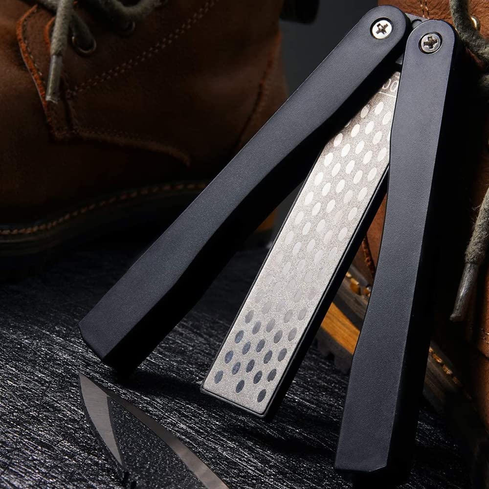 Fonctions : 1., Léger et pliable, il est très adapté pour le transport autour des activités de plein air. La longueur fermée est de 12,5 cm et la longueur dépliée est d'environ 23 cm / 9,9 2., Fonctionnement facile, améliore efficacement l'efficacité du polissage et la netteté de votre couteau., 3., La vitesse d'affûtage de la surface du diamant est plus rapide que la pierre à aiguiser conventionnelle, fiable et durable., 4., L'épaisseur est de 600 mailles / 400 mailles (avant et arrière), texture en forme de diamant, non seulement belle et antidérapante., 5., Petit, facile à transporter et à stocker, pratique à utiliser et avec de bonnes performances. Design pliable : la coque en plastique à plier protège bien la pierre à aiguiser intérieure et est pratique à transporter, idéale pour l'extérieur. Ahlsen Aiguiseur Couteaux, Affûteur Diamant Pliable à Double Grain D Epaisextrafin 400600 Grit Pour Loutil Daffutage De Cuisine Jardin Camping En Plein Air Noir 1253016mm 81327758 AIGUISEUR,800--Pierre à aiguiser Double face, diamant, cuir poli... Affuteur Diamant Pierre A Aiguiser Aiguiseur Couteaux Pliable Diamant - Double Face 400/600 Grain Outil Cuisine Portable Affuteur Diamant Couteau Caractéristique : la surface d'affûtage est en nid d'abeille, de sorte qu'elle peut aiguiser plus rapidement et plus efficacement que la surface d'affûtage ovale.