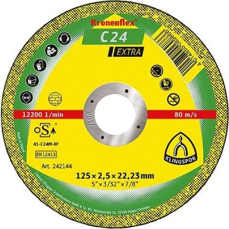 Les disques à tronçonner Type : A 36 R Dimensions : 180 x 2, 5 x 22, 23 ont : très bonne coupe – Agression et durée de vie optimisées. Disque à Tronçonner KLINGSPOR C 24 EXTRA 125 X 2,5 X 22,23 Mm, Droit SKU: ZJWK5065225-6573EGCategories: Accessoires outils, Bricolage, Maison & Jardin Description Reviews (0) Type de produit Disque à tronçonner multi-usage Dimensions Diamètre du disque 180 mm Épaisseur du disque 2,5 mm Diamètre d'alésage 22,23 mm Autres caractéristiques Travaux sur Acier inoxydable Quantité 25 pièce (s) Adapté pour... Sa conception minimise la formation de bavures et les contraintes thermiques, réduisant le besoin de retouches et économisant du temps. Type:A 36R; Dimensions: 180 x 2, 5 x 22, 23. Product description. Very good cut – optimized aggressiveness and service life Klingspor is one of the world's... Liant : résine synthétique, renforcée de fibres Klingspor est l'un des principaux fabricants mondiaux de produits de qualité supérieure pour le traitement des surfaces et la séparation des matériaux. Disque de coupe A24 Extra 115x2,5mm curv Klingspor - réf. 189002 Type de disques à tronçonner : A 36 R., Dimensions : 180 x 2, 5 x 22, 23., Très bonne coupe – agressivité et durée de vie optimisées. Vitesse de rotation admissible : 12200 tr/min Alésage : 22,23 mm Epaisseur : 0,8 mm Diamètre : 125 mm Application Acier inoxydable Acier Métaux non ferreux Domaines d'utilisation Construction d'installations