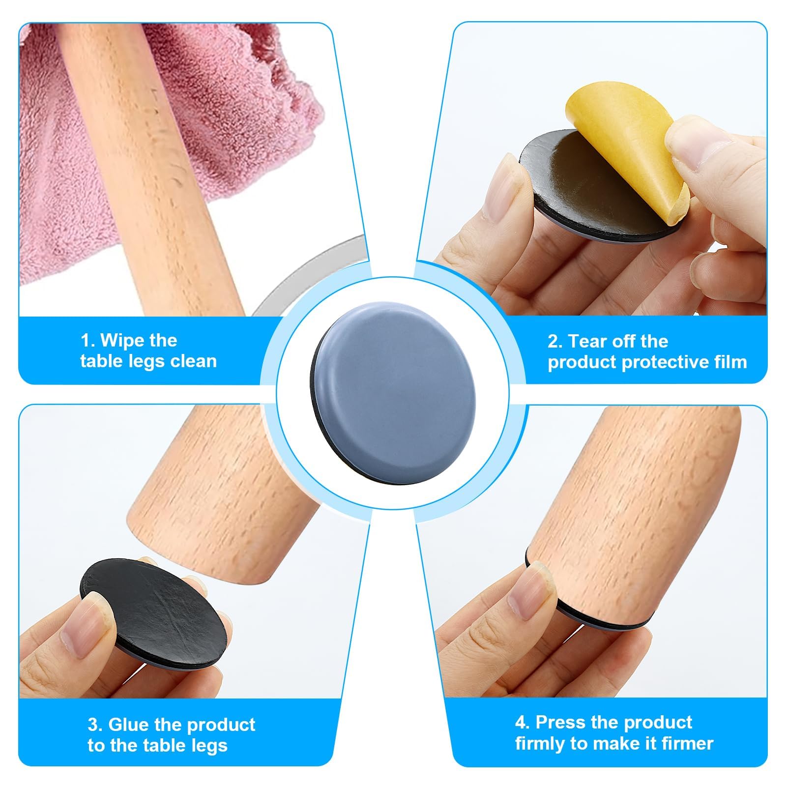Les patins en téflon PTFE assurent un mouvement à faible friction sur différents revêtements de sol, y compris le bois, le carrelage et la moquette. Grâce à leurs dimensions de 15 x 75 mm, ces patins sont parfaits pour une grande variété de meubles tels que les chaises, les tables et les canapés À propos de Auvotuis est une marque dynamique avec un processus de production professionnel et mature, vous offrant des produits d'excellente qualité et une nouvelle expérience d'achat avec un excellent service. Couleur : bleu grisâtre., Matériau : PTFE., Diamètre : 38 mm., Épaisseur : 6,5 mm. Patins de meubles - PTFE - 16 pièces - Auto-adhésives - 40x40mm Patin Teflon Lot De 24 Patins Autocollants En PTFE Pour Meubles Avec Patin Glissant Pour Meuble 💎 Contenu et taille : 16 patins ronds à clous pour chaise, diamètre 38 mm, épaisseur : 6,5 mm, longueur du clou : 16 mm. 💎Garantie après-vente : nous insistons sur l'objectif de gagner votre confiance avec une qualité et un service de haute qualité. 💎Facile à installer : pré-percez des trous pour les pieds de meubles en bois dur, nettoyez la surface des pieds de meubles, puis séchez-les, puis tapotez pour l'installer facilement sur le bas des chaises et des tables en bois. Contenu de l'emballage : 16 patins de chaise à clous de 3,8 cm. Longueur du clou : 16 mm. Lot De 16 Patins De Meubles Autocollants En Téflon Ptfe Pour Moquette · Remboursement pendant 3 ans de votre achat sous forme d'avoir · Prise en charge immédiate... Caractéristiques : Nom du produit : chaise coulissante.